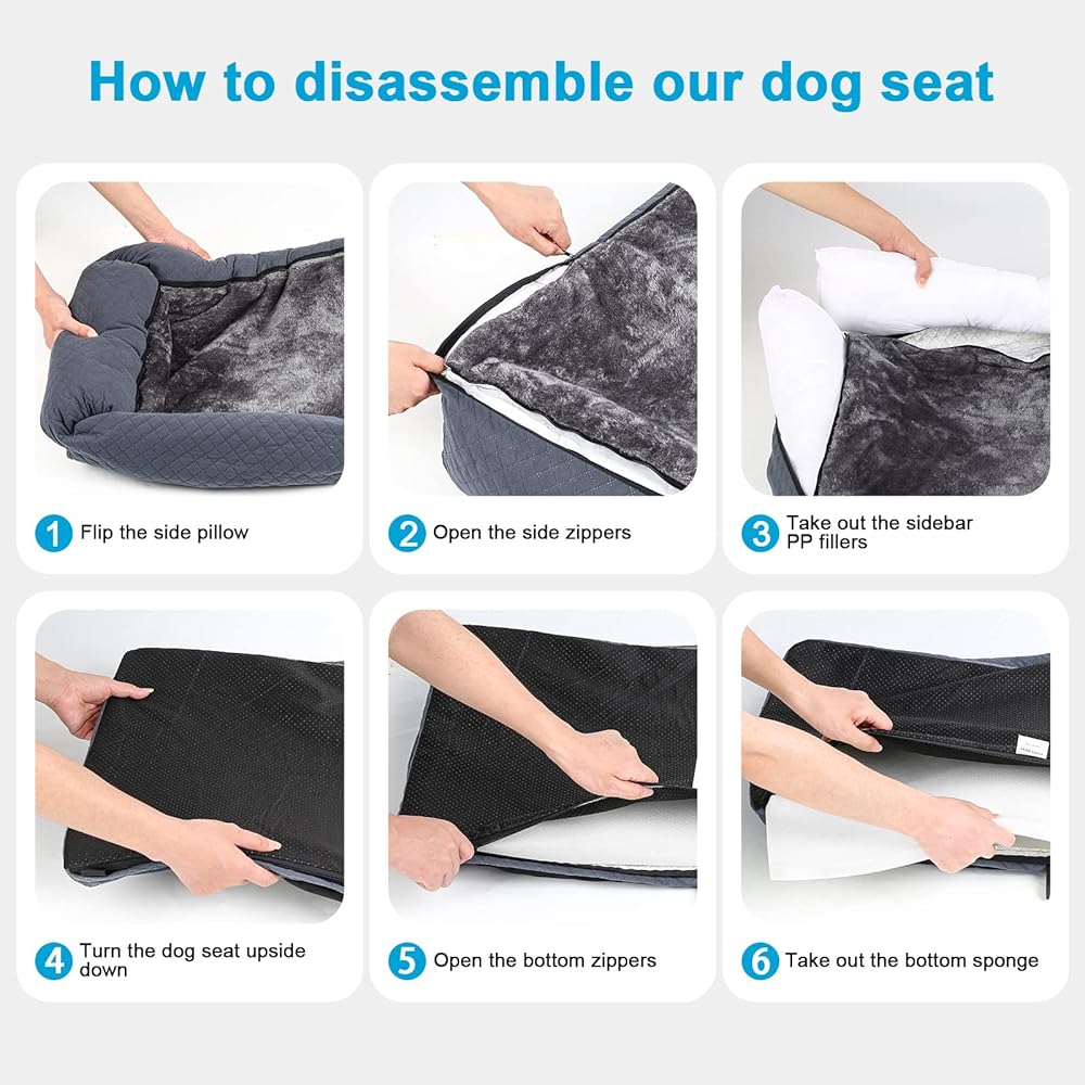 🏠Easy to Clean: Our dog seat for large dogs adopts fully detachable design for easy cleaning, just open the bottom and side zippers, take out the PP fillings and bottom sponge, put the dog seat cover in your washing machine or wash handly. Maintaining cleanliness has never been easier!