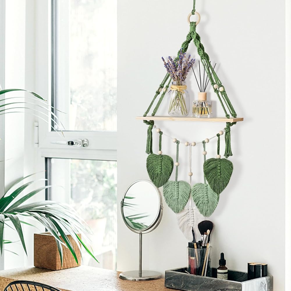 Great Gift: The hanging shelf is very suitable for people who love boho style. If you want to give gifts to people who like urban Bohemian decoration or unique home furnishings, this will be a good choice.