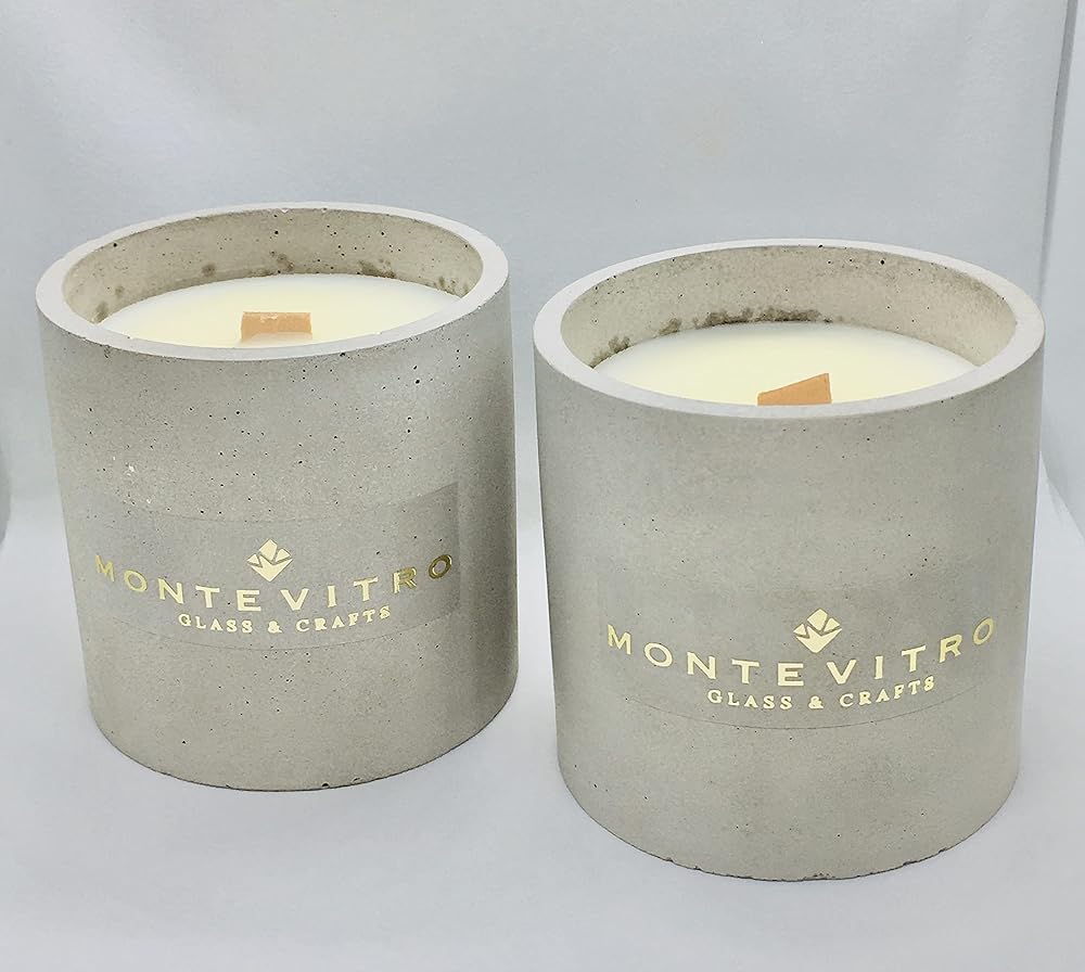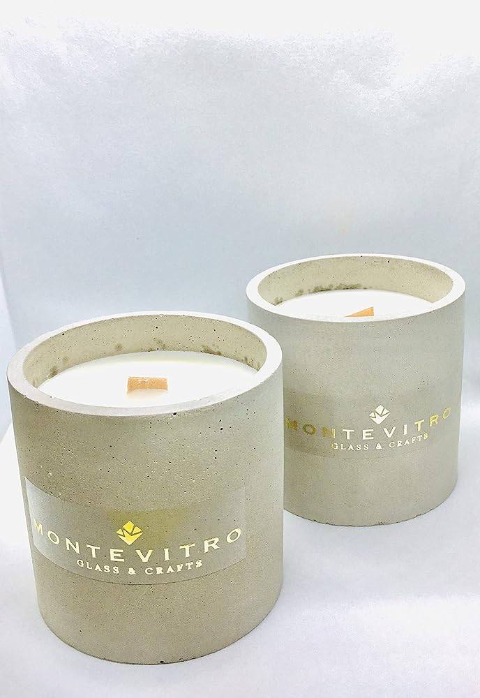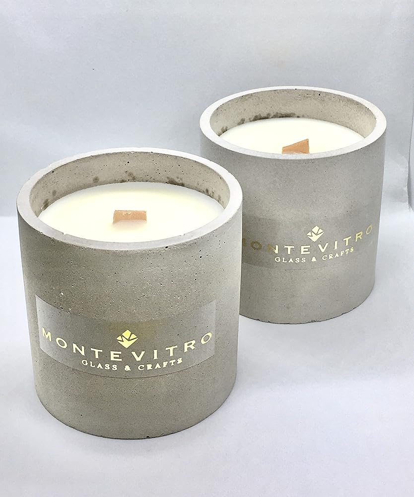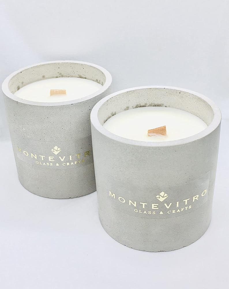 2 شمعة في قاعدة خرسانية أسطوانية، شمع الصويا العطري وفتيل خشب - مونت فيترو