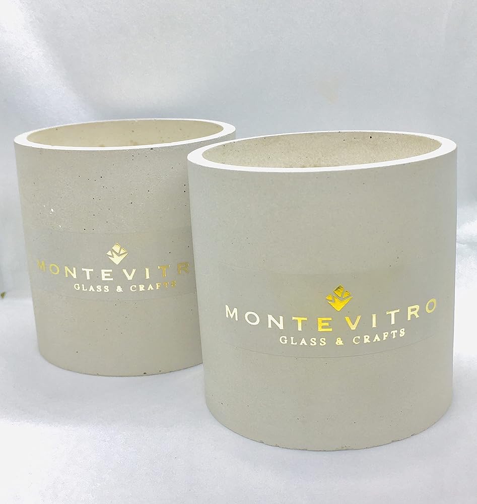 SET with 2 aromatic candles in cylindrical base of natural concrete Monte Vitro with design own. Of 3 1/4" inch of diameter and 3 1/4" inch of height, in elegant fine finish, for interiors and exteriors. Pack with 2 pieces, elegant in its design, with quality and finely detailed finishes, resistant to the weather. With duration of 80 hours for each candle.