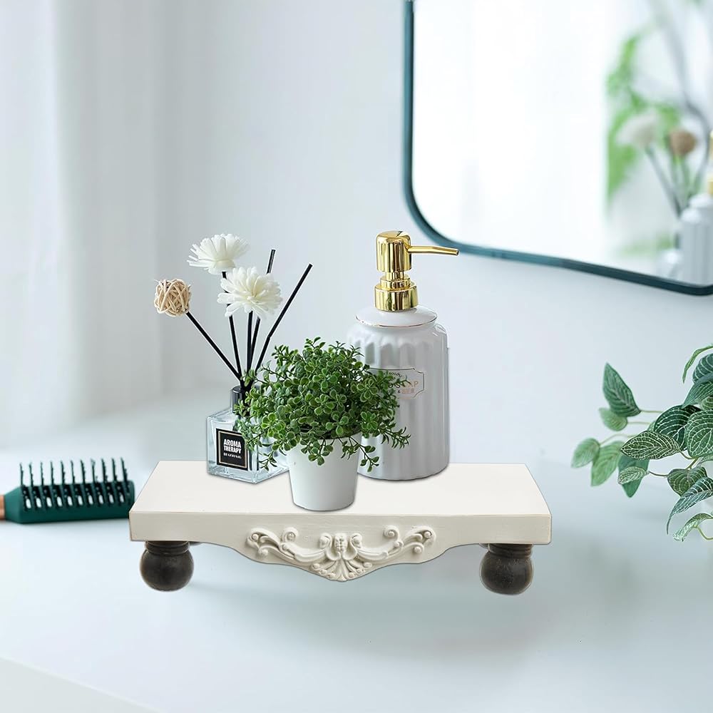 Beautifully Raise Your Decor to New Levels: From your bathroom to your kitchen - the rectangle wood pedestal stand adds that extra special stylish flair to your home and works great as a sink organizer, soap stand and more! At the bottom, there are four black columns to better secure this raiser. Give your farmhouse bathroom decor, home decoration and more some height and the eye-catching display they deserve.