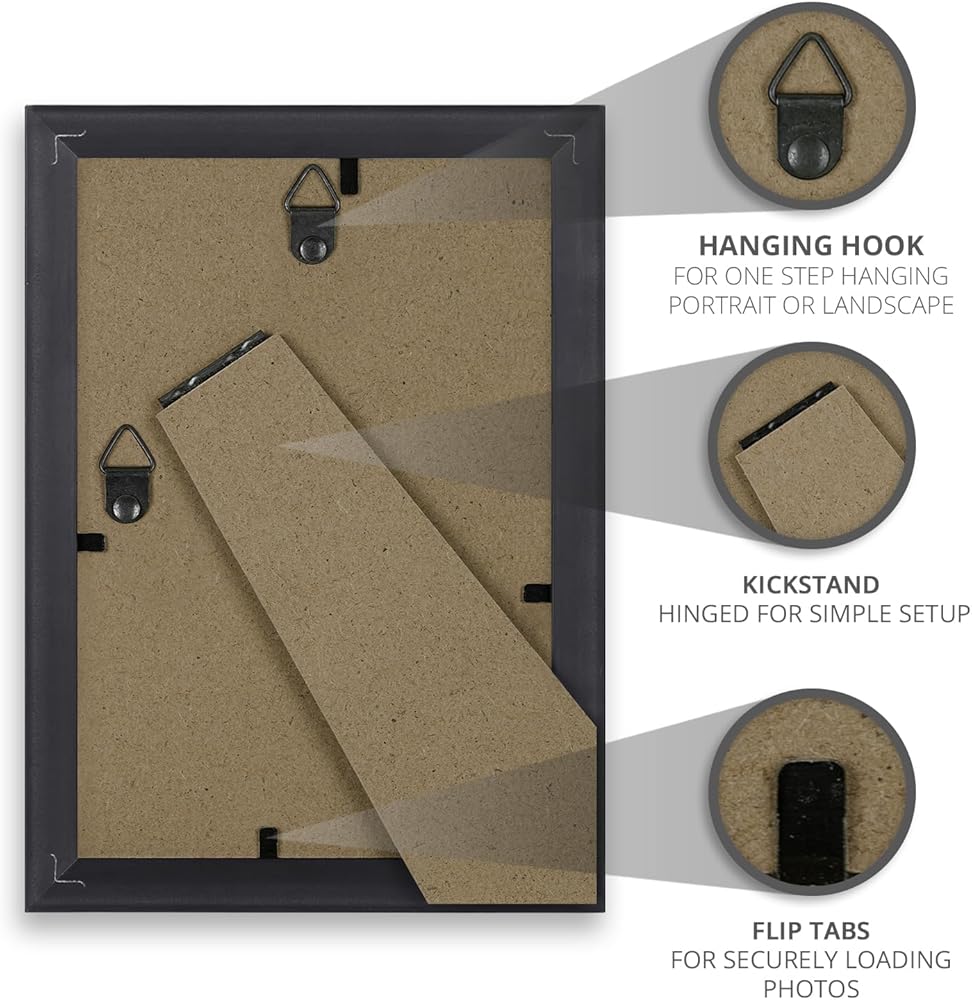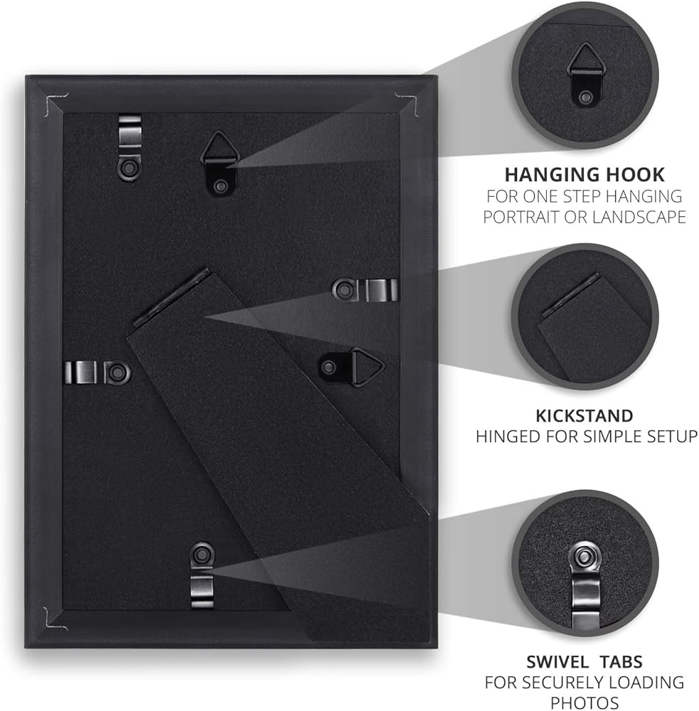 TABLE TOP DISPLAY - The versatile black frames' kickstand easel allows you to showcase your family portraits either horizontally or vertically on any level surface