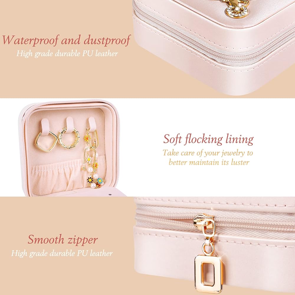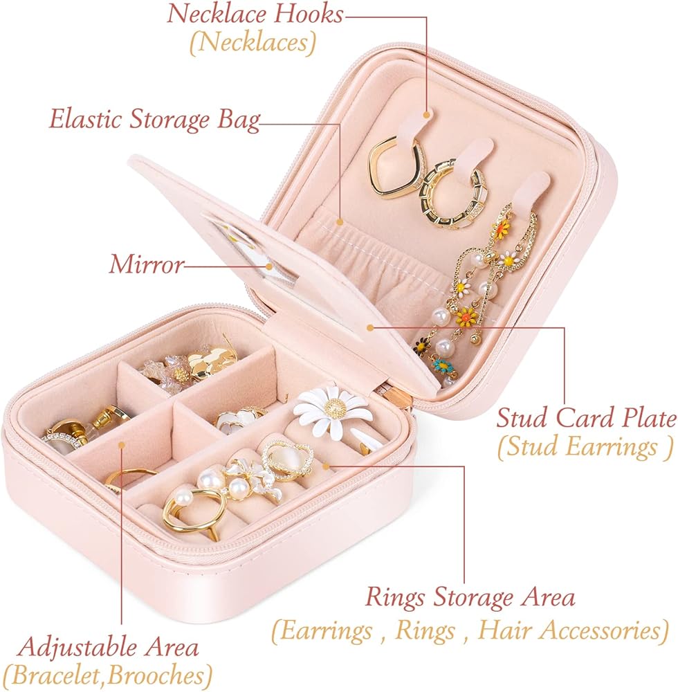 PRETTY COMY Small Travel Jewelry Box Organizer, Portable Travel Mini Jewelry Box, Display Case for Girls Women Rings Earrings Necklaces Storage with Mirror, Ideal Gift for Ladies
