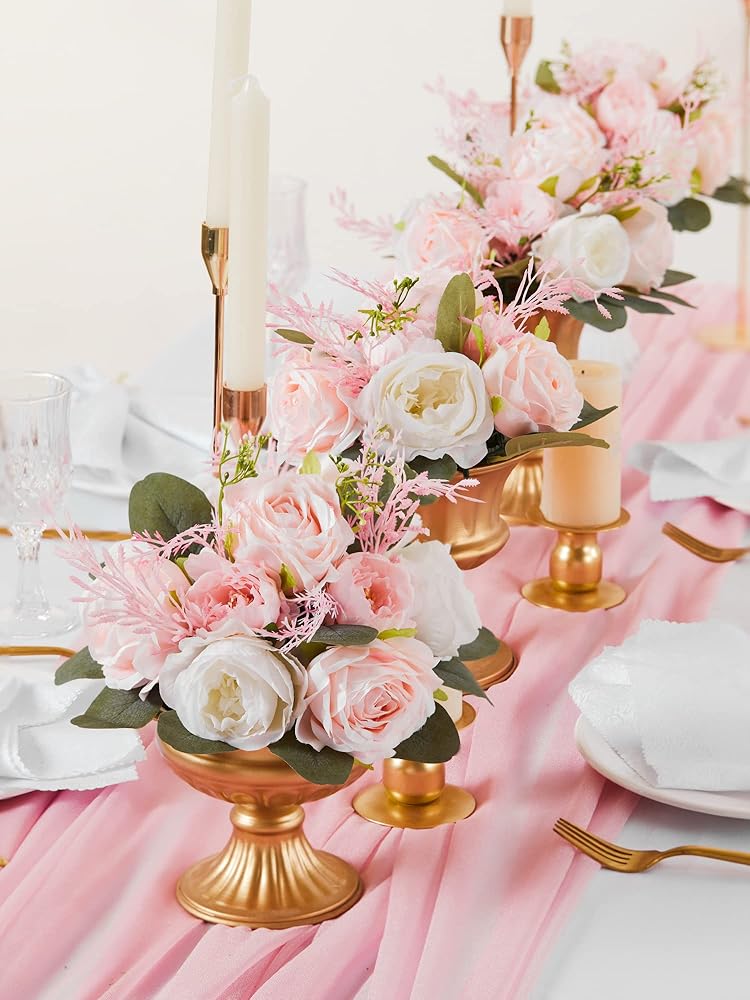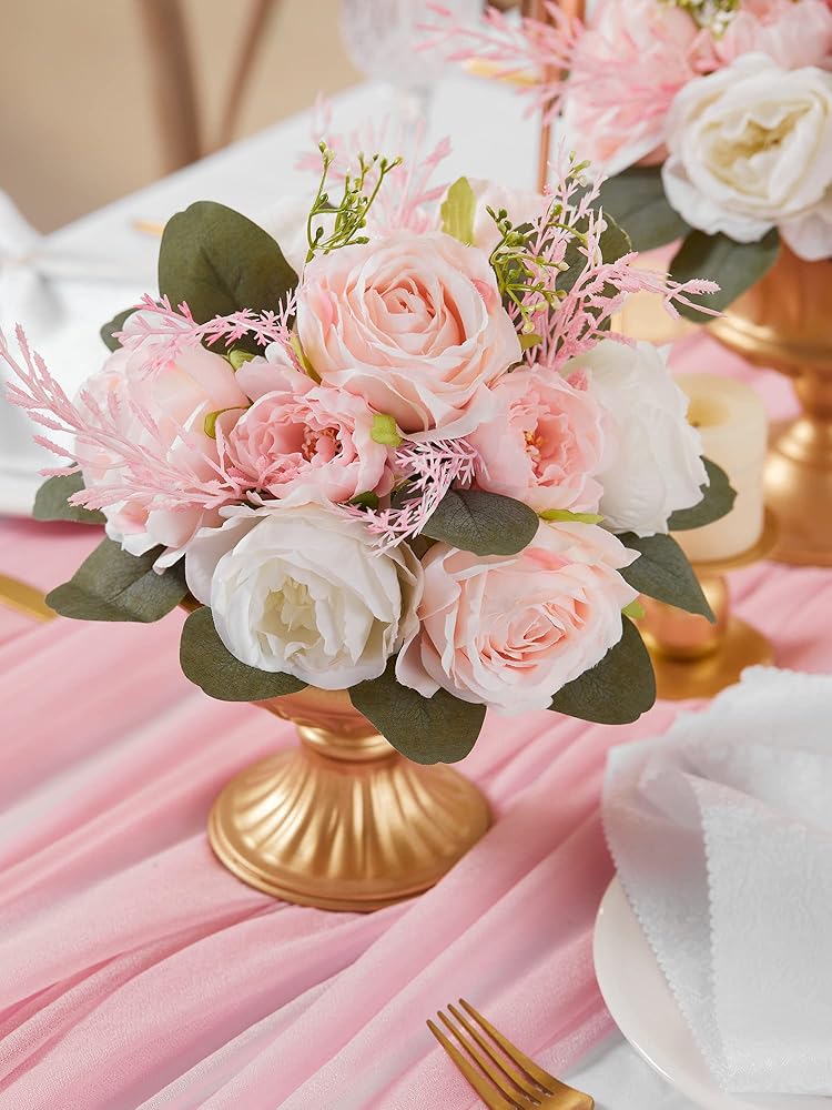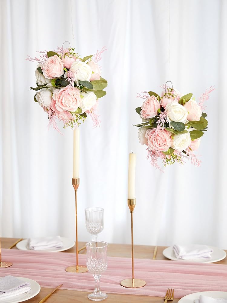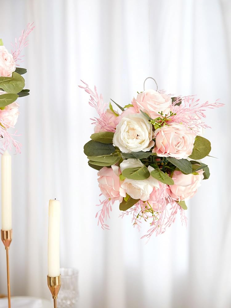 4 قطع من كرات الزهور الاصطناعية من MISSPIN لتزيين طاولات الزفاف المركزية وزهرة الفاوانيا المزيفة وترتيب كرات الزهور باقة ديكور المنزل للحفلات (المزهرية غير متضمنة)