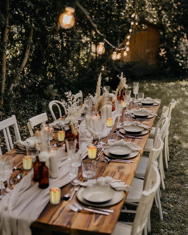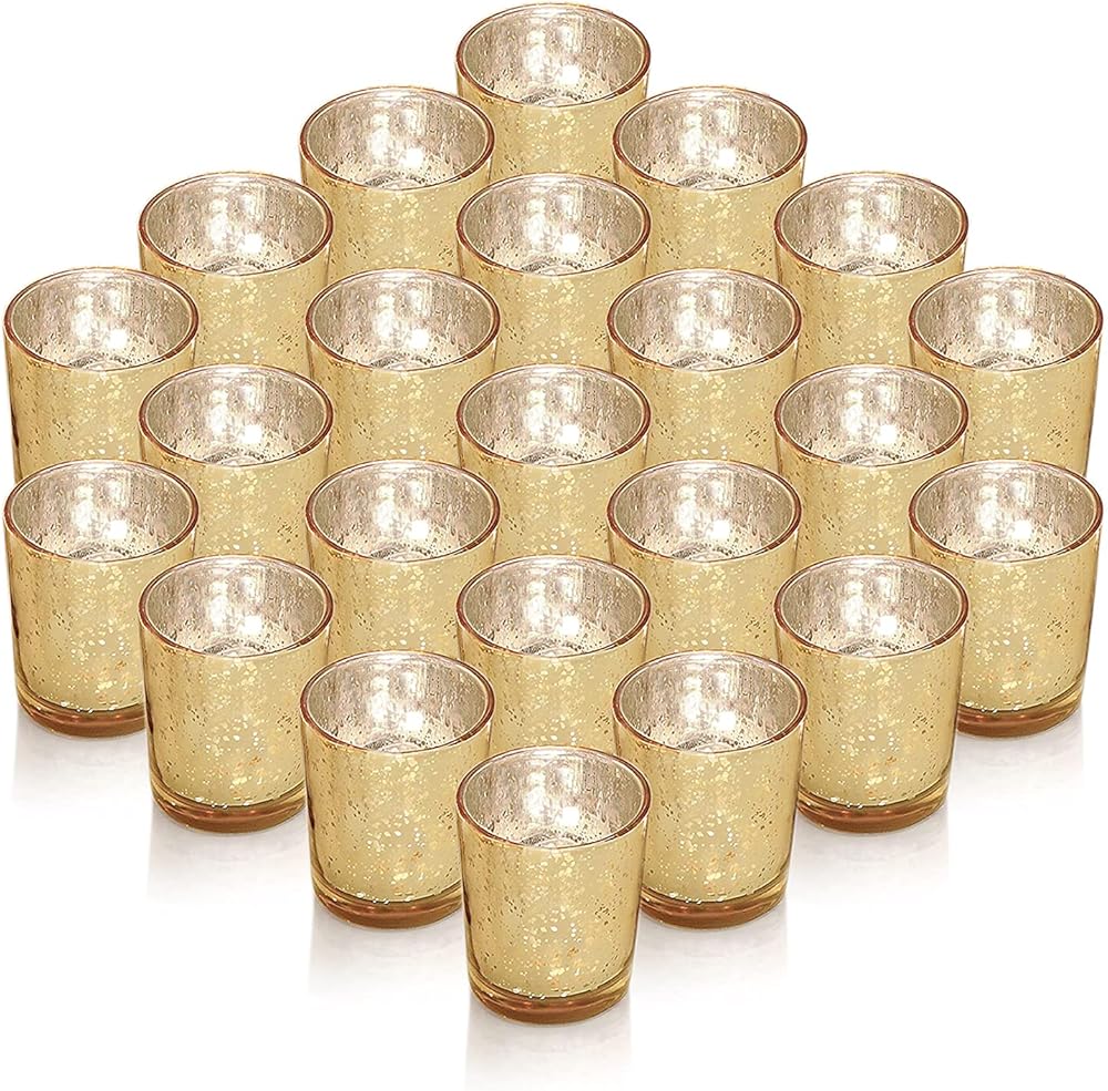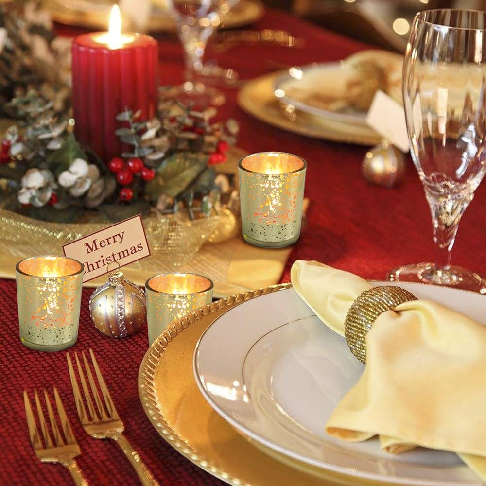 حامل شموع من زجاج الزئبق: كل حامل شموع ذهبي مصنوع من زجاج الزئبق الخالي من الرصاص مع لمسة نهائية معدنية عتيقة. عندما تضيء الشموع، سيكون هناك انبعاث ضوء النجوم مما يضيف جوًا أنيقًا ورومانسيًا إلى حفلاتك وديكور منزلك