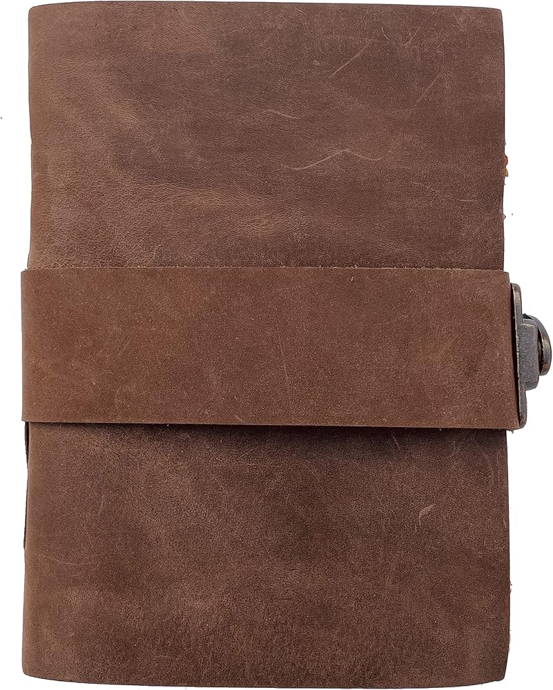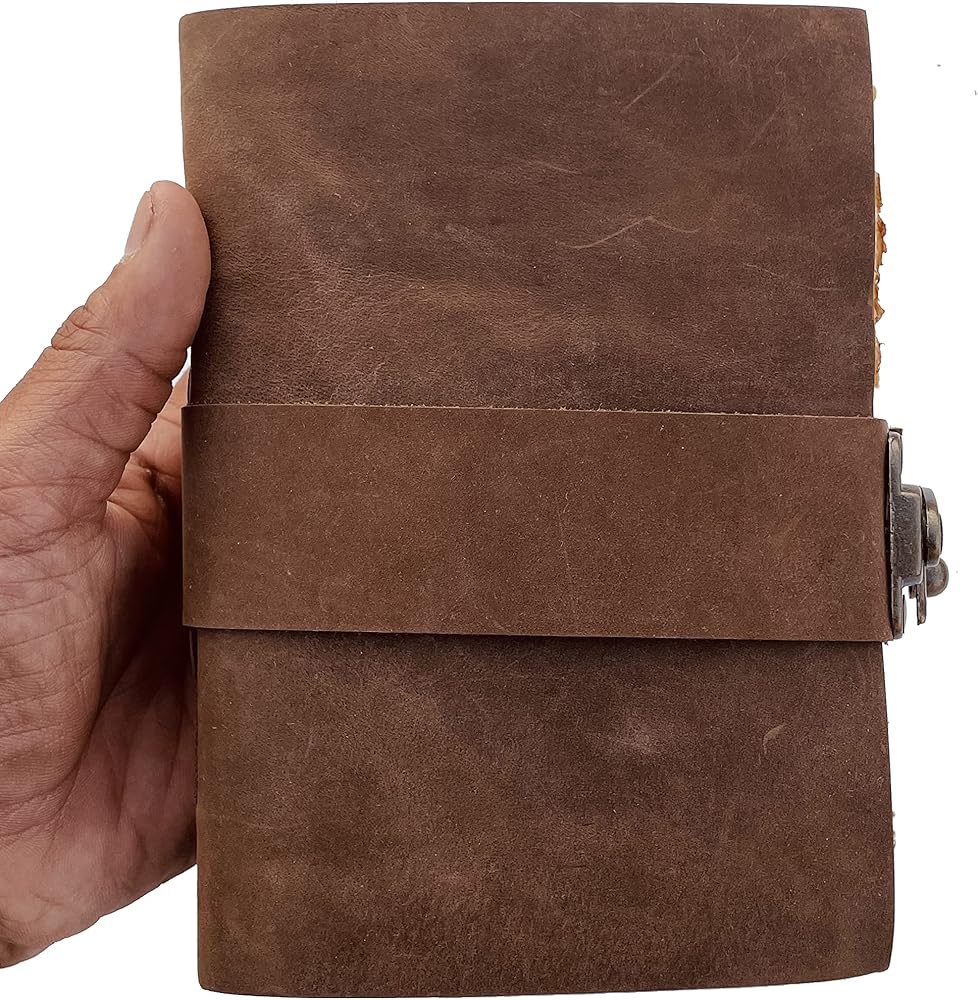 غلاف قوي، غلاف جلدي ومفتاح - غلاف متين مخيط يدويًا للتأكد من عدم خروج أي ورق بشكل فضفاض. الغلاف الجلدي مع مفتاح لطيف ينزلق سيضمن أن الأوراق الموجودة داخل المجلة آمنة ومأمونة.