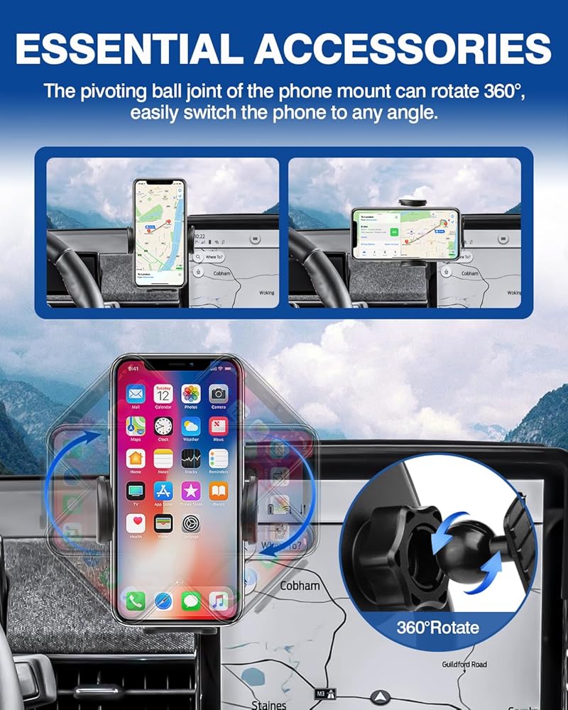 One-hand Operation---This accessories for Mustang Mach-E let you use phone conveniently while driving. More stabler than a magnetic one. Real one-hand operation, you can use your phone just by one hand. The pivoting ball joint of the phone mount can rotate 360 degree, easily switch the phone to any angle.