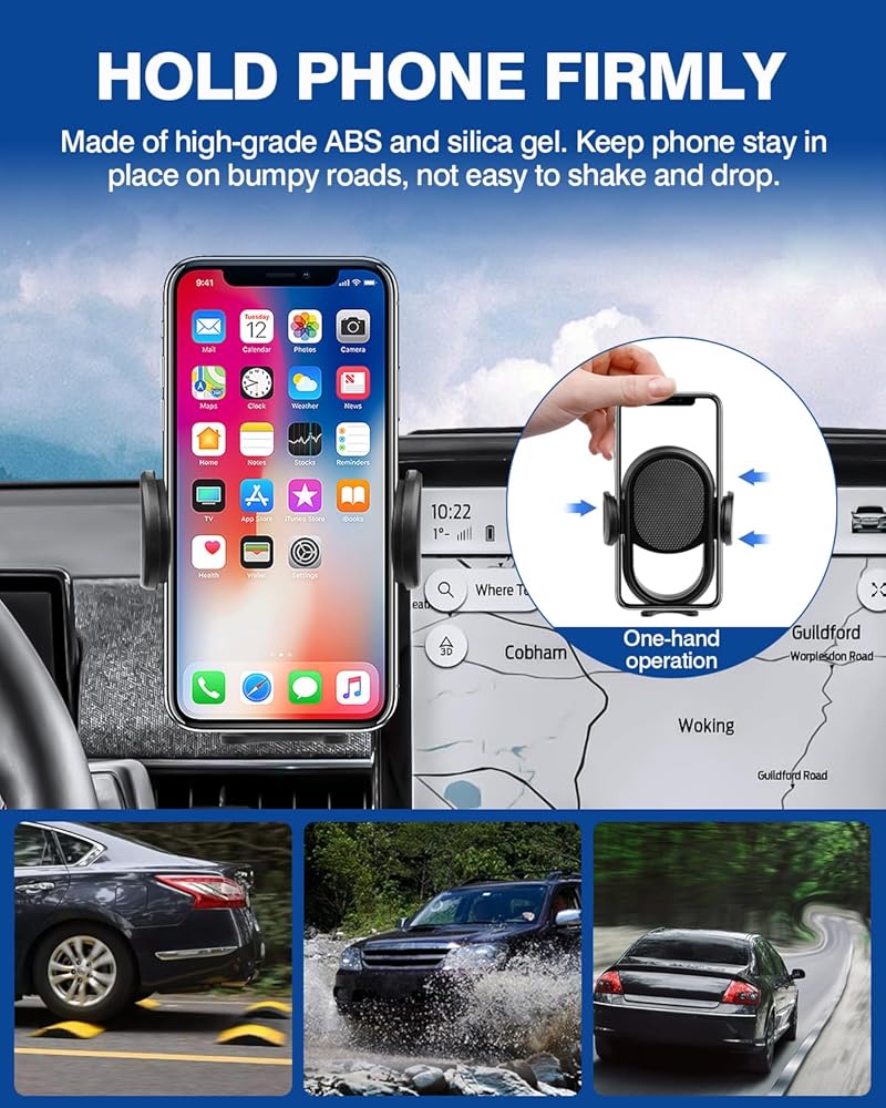 Upgrade New Design---Different from ordinary cell phone holders, ours has an integrated design of touchscreen and phone stand, which does not block the air outlet. Besides, the base mounted on the screen can adjust the height of the phone mount.