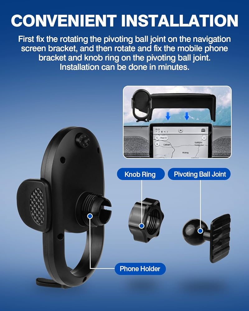 Simple Installation---No drilling or any tools required. Simply attach the screen bracket to the touchscreen and then attach the phone stabilizer to the screen base to complete the installation.