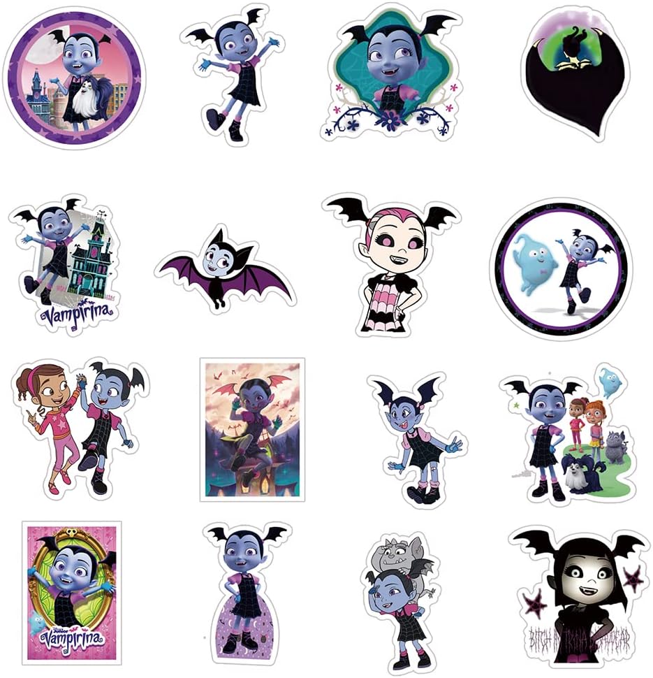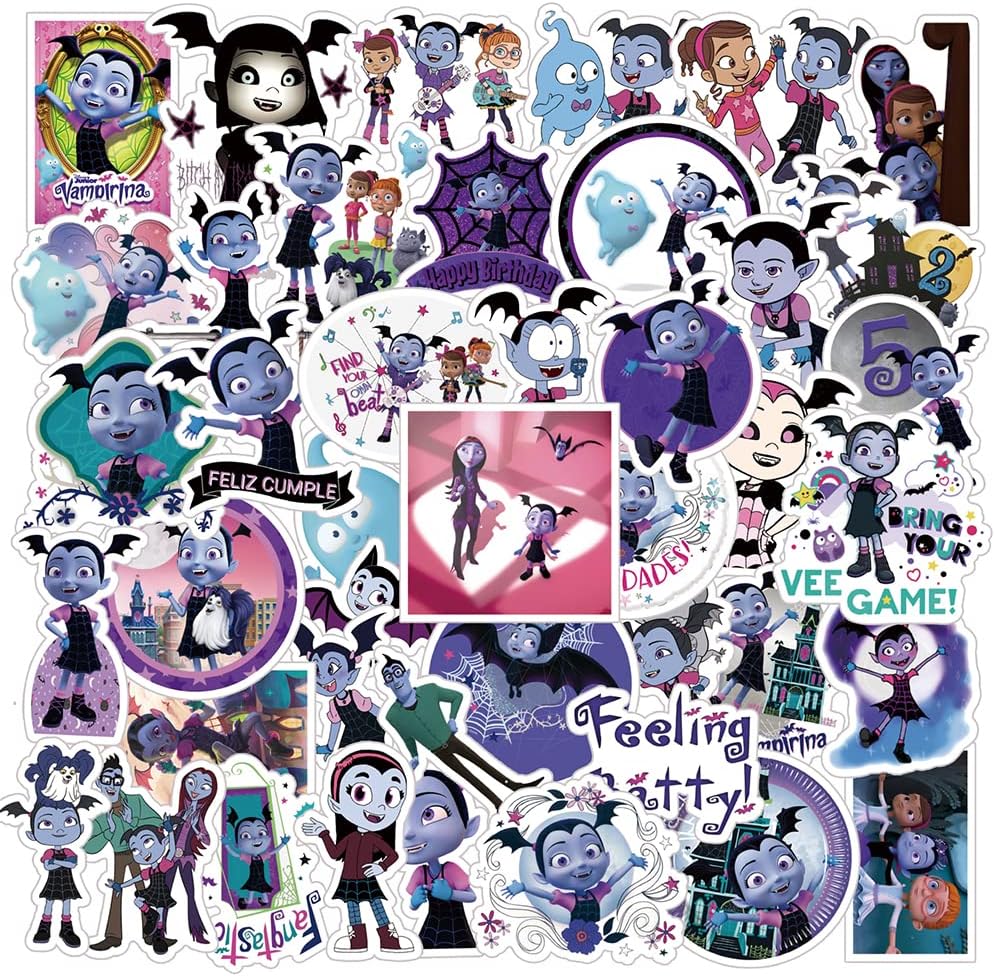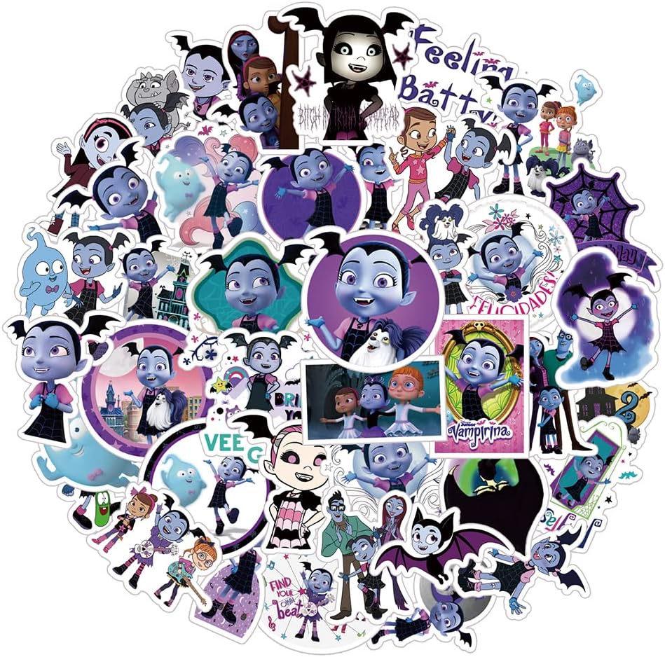 50 قطعة من ملصقات فامبيرينا الجمالية الملونة من الفينيل مقاومة للماء لزجاجة المياه واللابتوب وممتص الصدمات والسيارة والدراجة والامتعة والجيتار ولوح التزلج