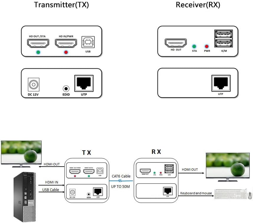 USB&KVM: On the receiver side, can connect the mouse and keyboard to control the remote computer on the transmitter side.
