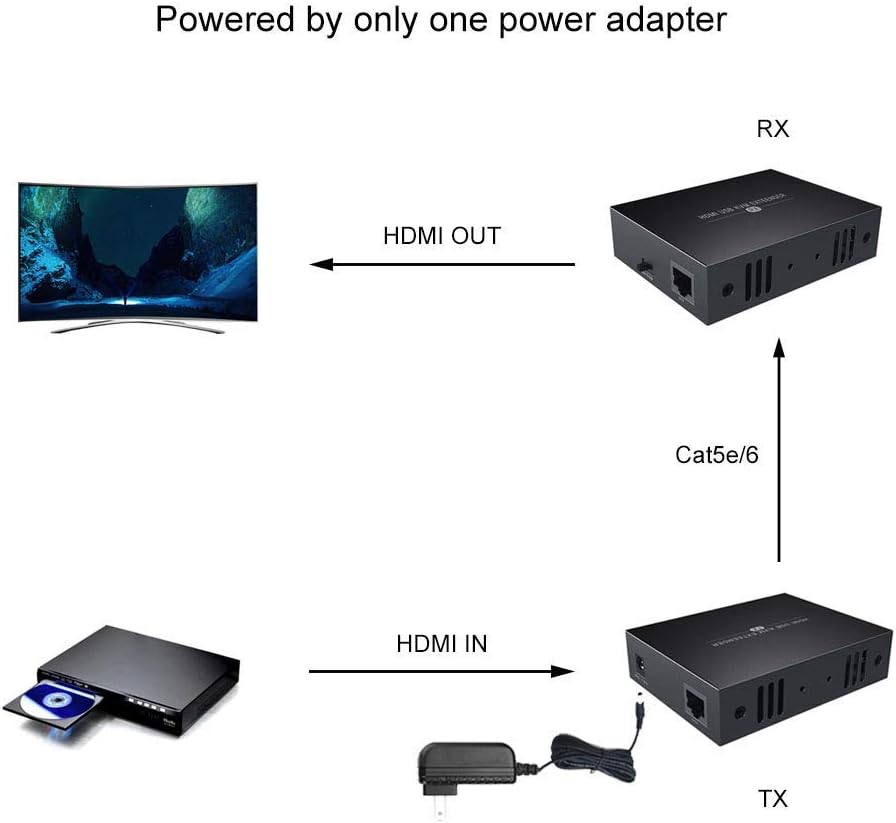 HDMI OVER ETHERNET : Transmit up to 50m/164ft by Cat6/7 cable, 40m/130ft by Cat5e cable. For better audio&video quality and longer transmission distance, we recommend Cat6 or Cat7.