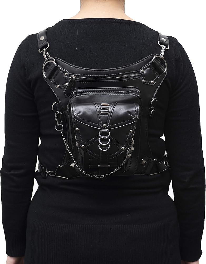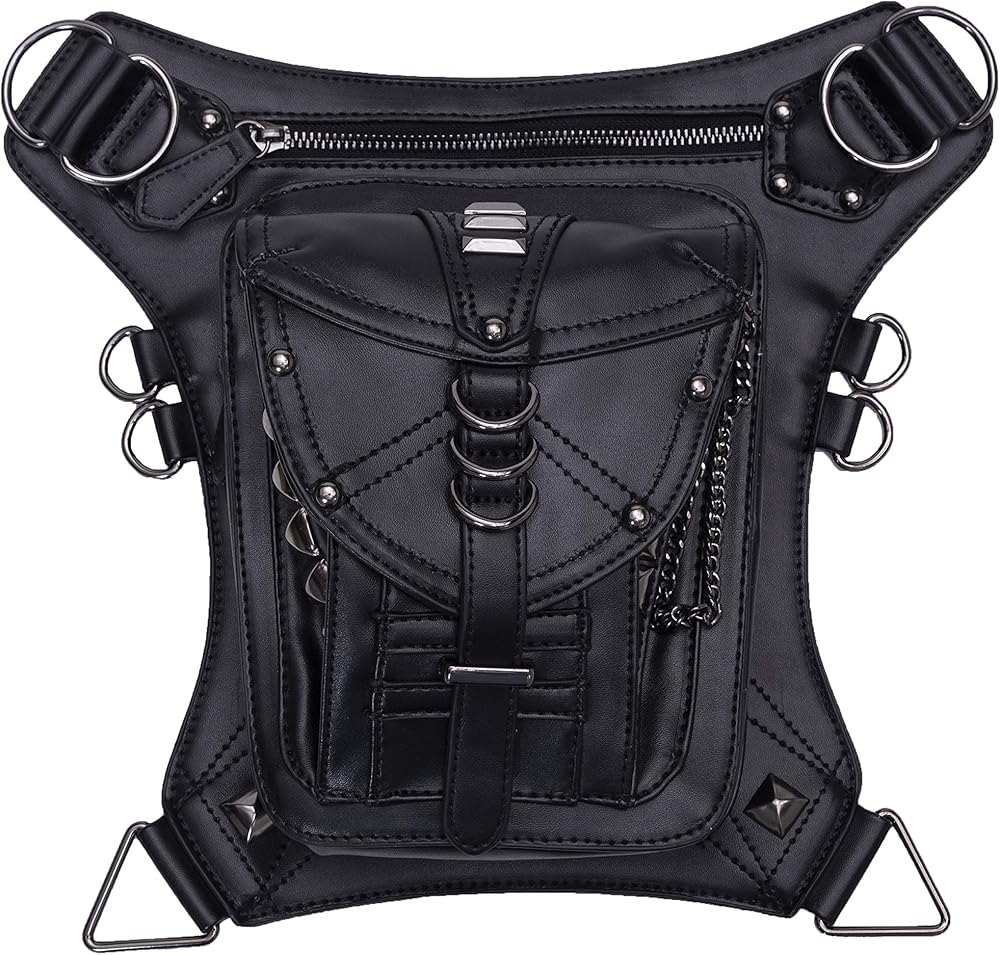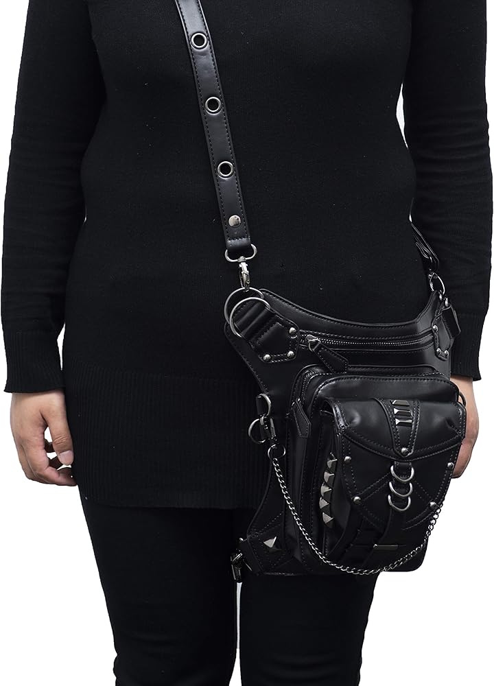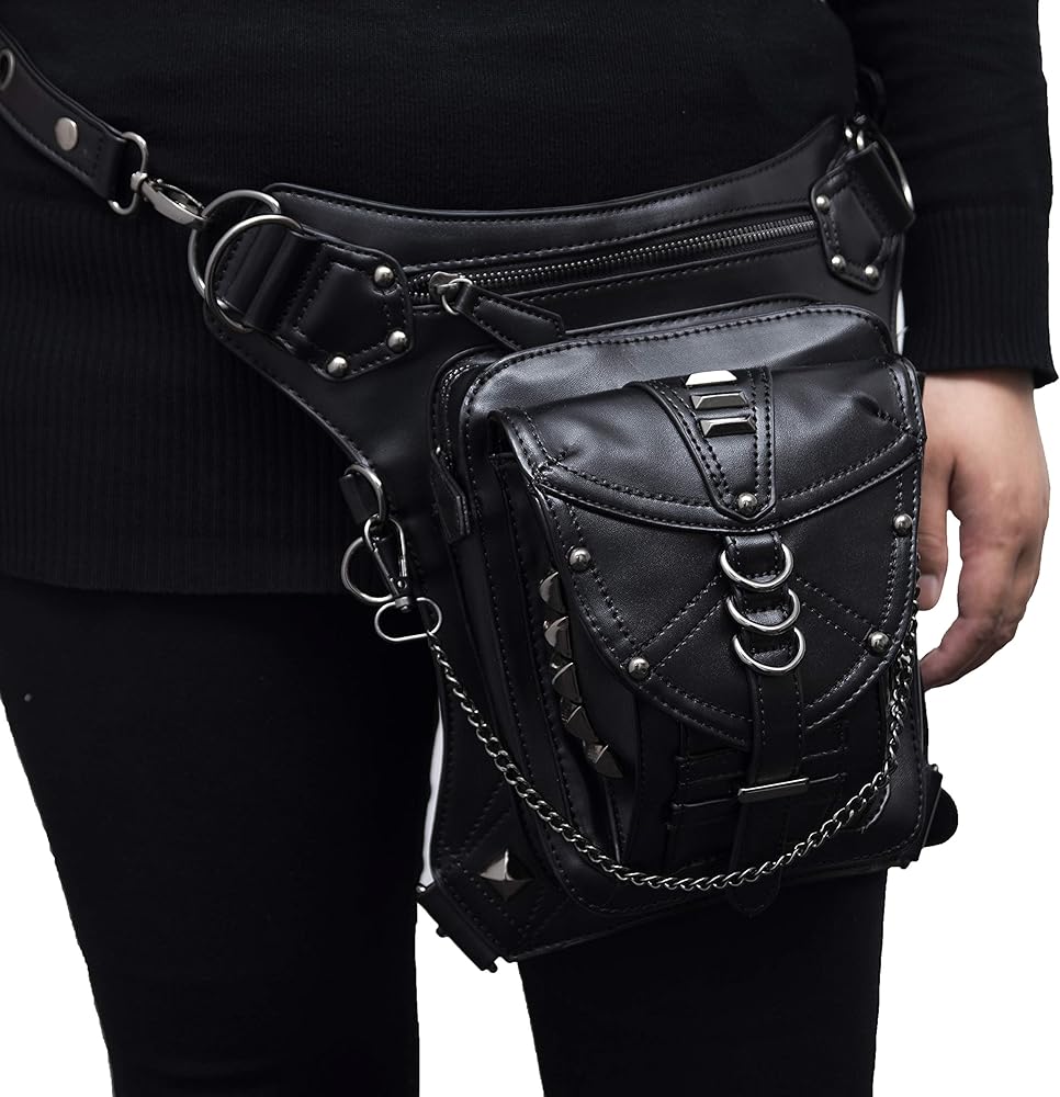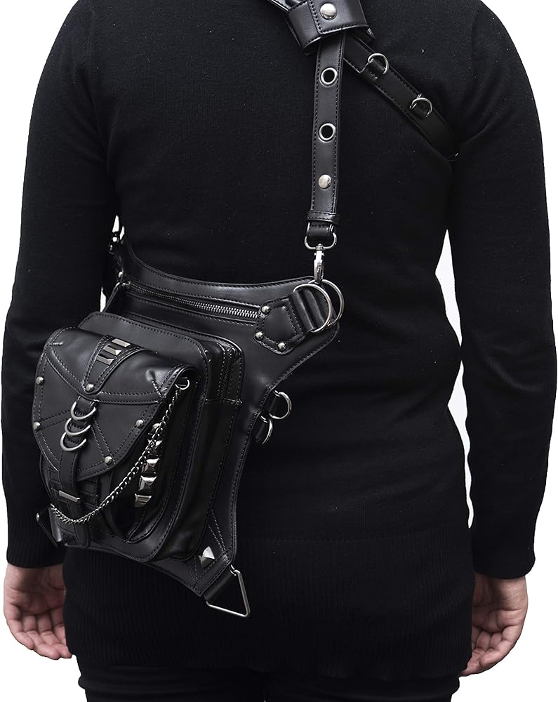 حقيبة جلد PU Fanny حقيبة متعددة الأغراض التكتيكية على الساق حقيبة يد Steampunk Retro دراجة نارية حقيبة سيدة عتيقة على الكتف والخصر والأرجل والفخذ