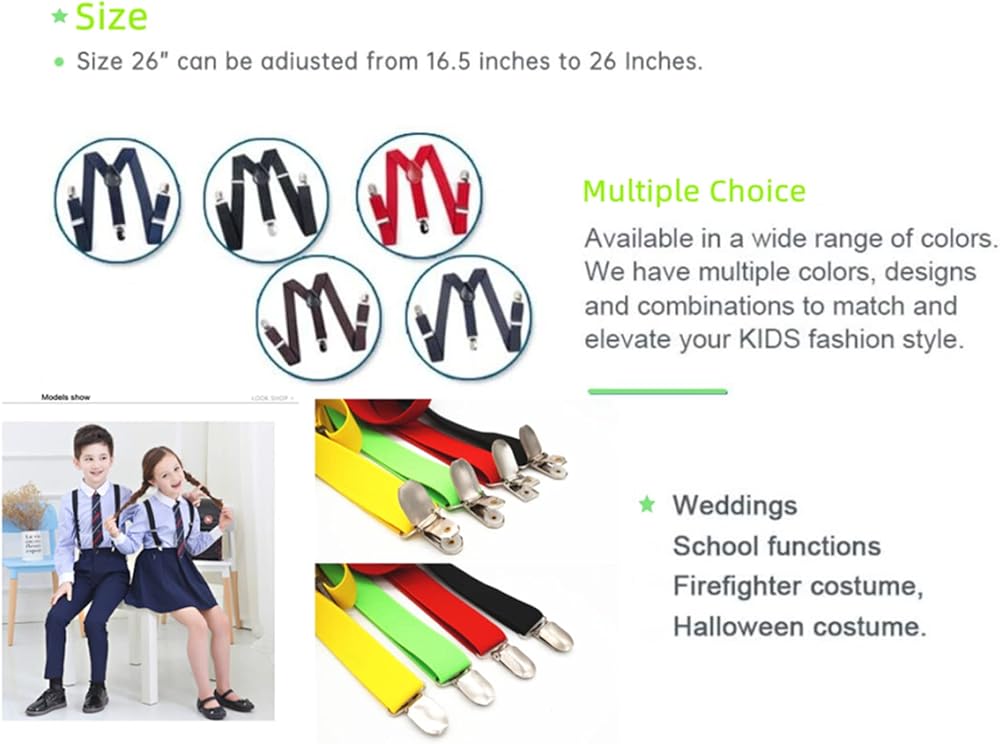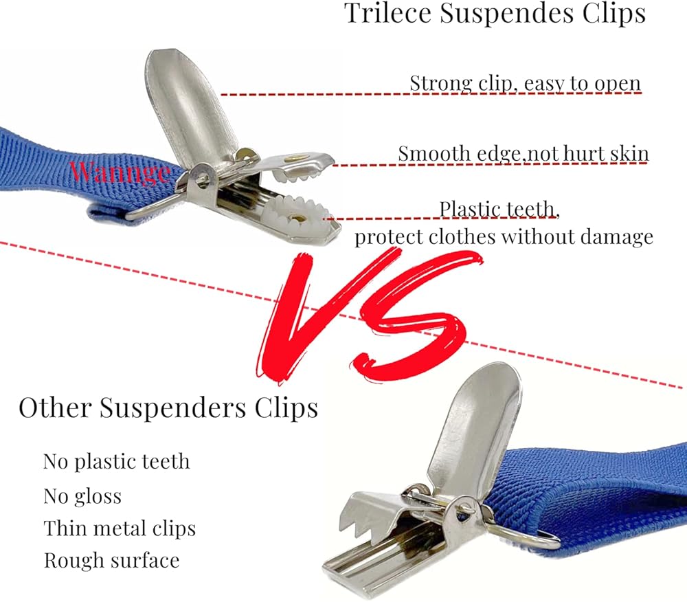 Great for boys and girls alike. Keep pants up in style! Heavy duty 1" fully adjustable, elastic straps with highly polished chrome pull clips.