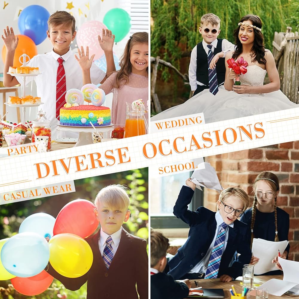 • هدايا مثالية: ربطات العنق المخططة هذه هي هدايا مثالية لابنك أو حفيدك أو ابن أخيك أو أخيك أو طلابك أو أصدقائك في أعياد الميلاد ويوم الطفل والكريسماس وغيرها من العطلات، سهلة التنسيق مع القمصان أو السترات أو الكارديجان أو الأزياء التنكرية