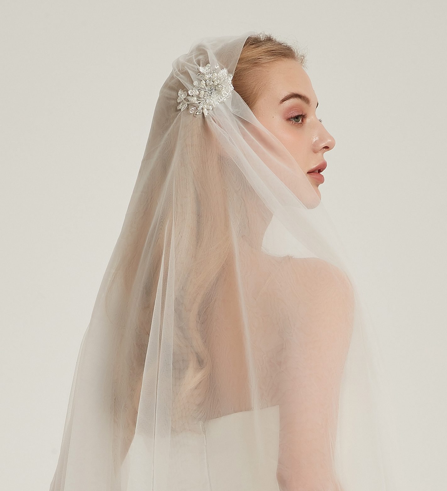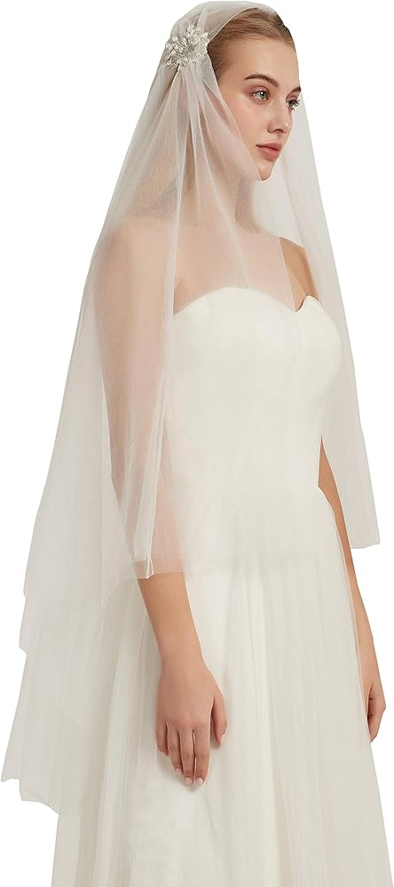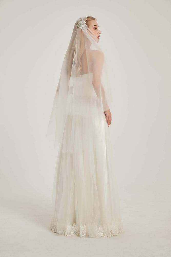 - كريستال الزفاف كيب الحجاب طبقة مزدوجة الزفاف تول الحجاب
