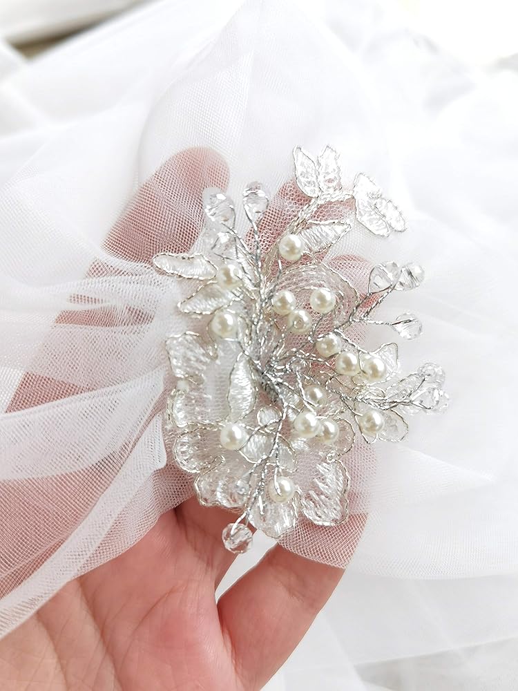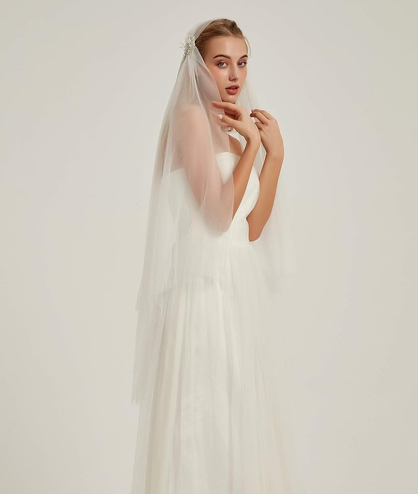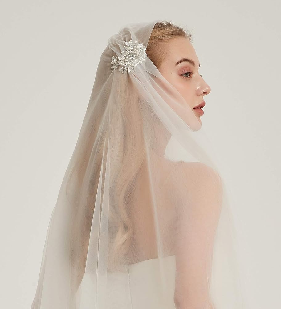 Leimandy 1930s طبقة مزدوجة حجاب الزفاف بلورات طرحة زفاف خوذة B07