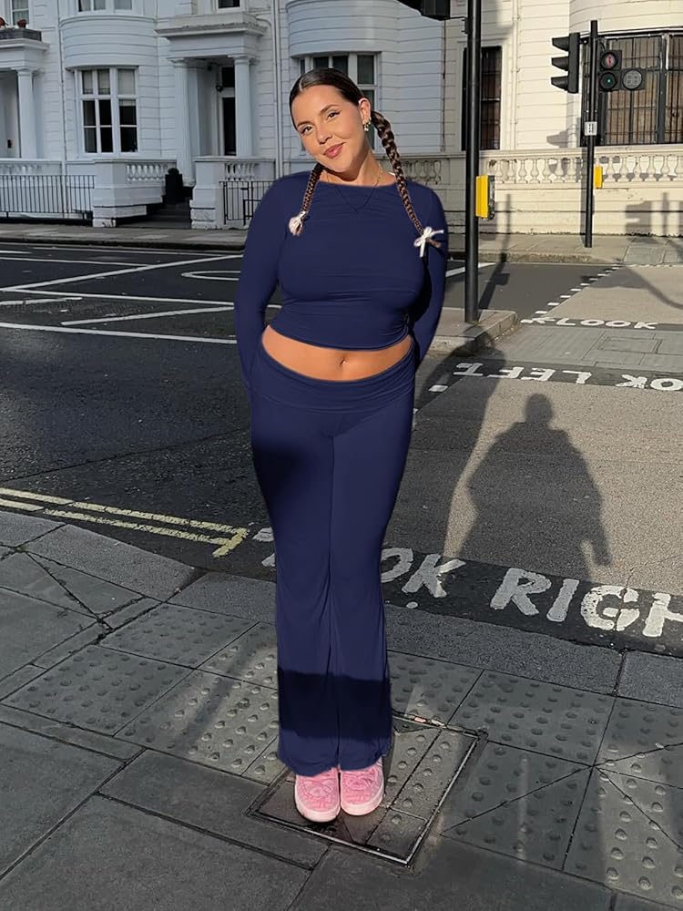 التصميم: أطقم صالة للنساء مكونة من قطعتين برقبة دائرية، وطول قصير، وارتفاع منخفض، وتصميم متوهج قليلاً. تم تصميم القميص العلوي قصير الأكمام والسراويل ذات الارتفاع المنخفض لإبراز منحنياتك مع توفير الراحة القصوى.