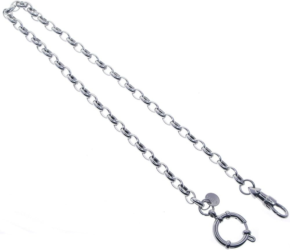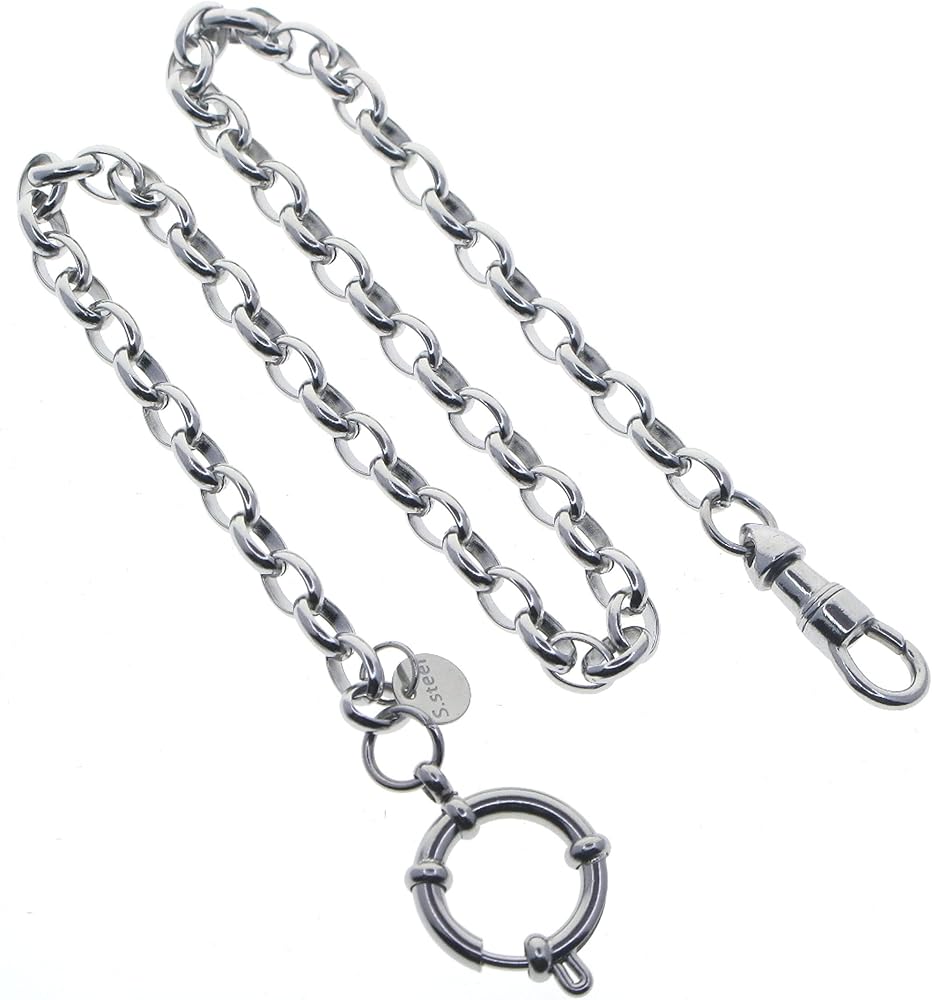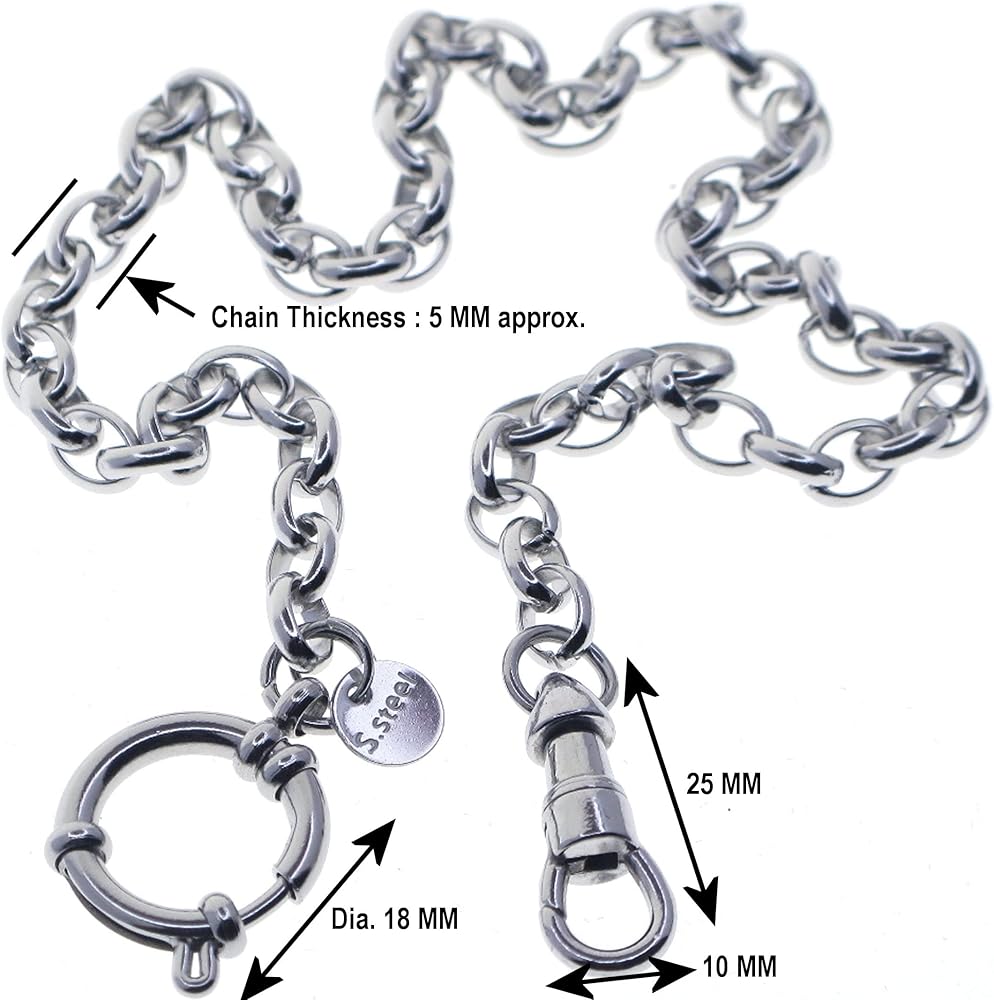 - Item Size (approximate) : 12.5" Steel Cable Chain + 26 X 10 MM Steel Albert Swivel Clasp + Dia. 18 MM Spring Ring Clasp