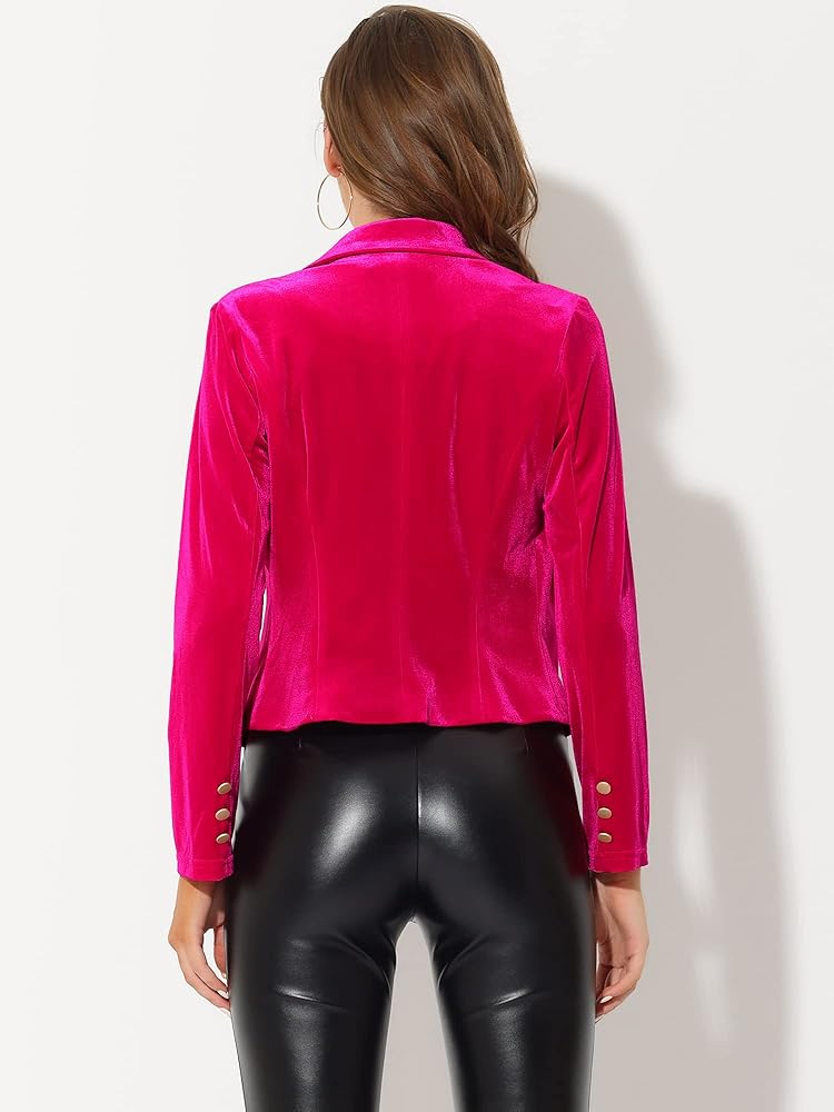 Allegra K Women's 1 Button Velvet Blazer Lapel Business Office Christmas Crop Suit Jacket