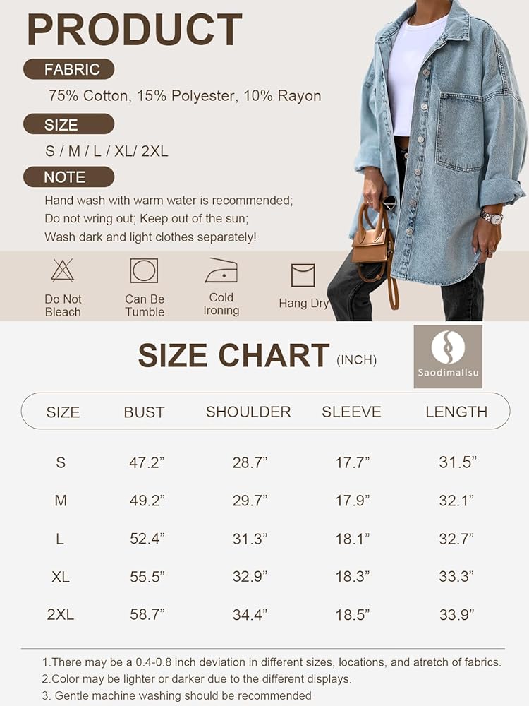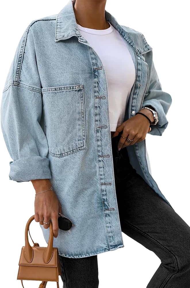 Features: Denim jackets for women, the jean coat is design with long sleeve, button down, two pockets, solid color, oversized relaxed fit style, provide you all day comfort while looking stylish.
