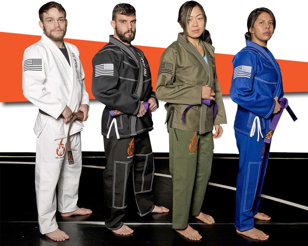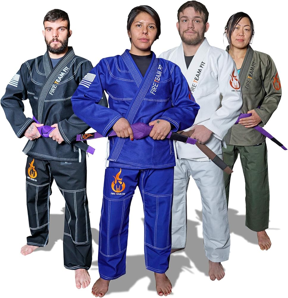 Fire Team Fit BJJ Gi، Jiu Jitsu Gi، كيمونو للرجال والنساء، منكمش مسبقًا، Jiu Jitsu Gi البرازيلي مع حزام أبيض مجاني