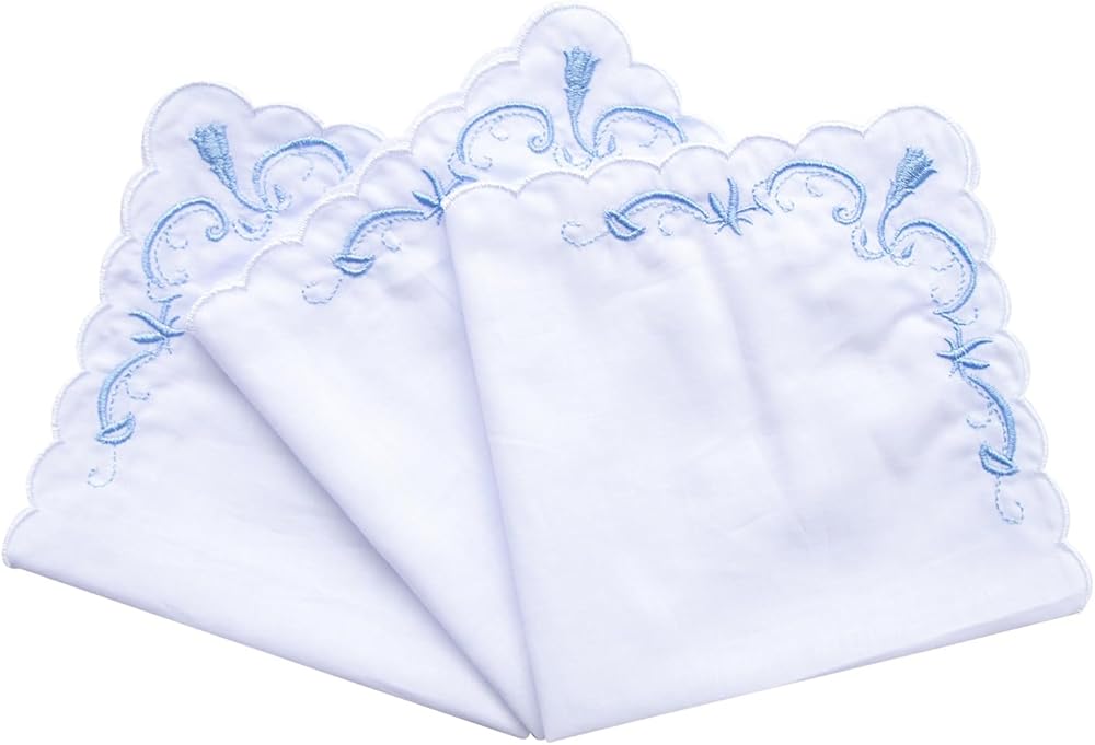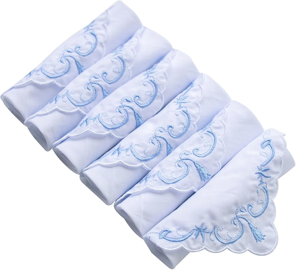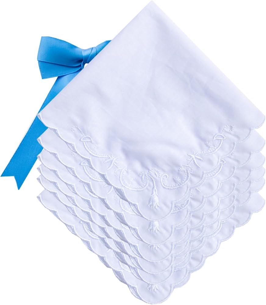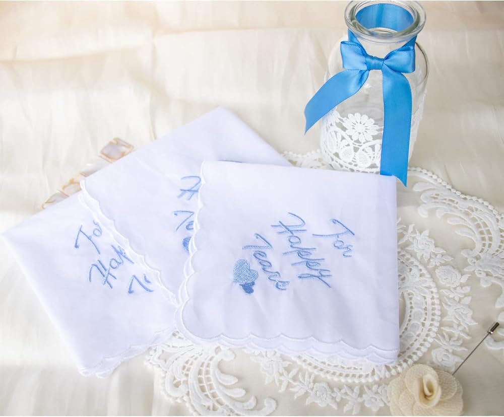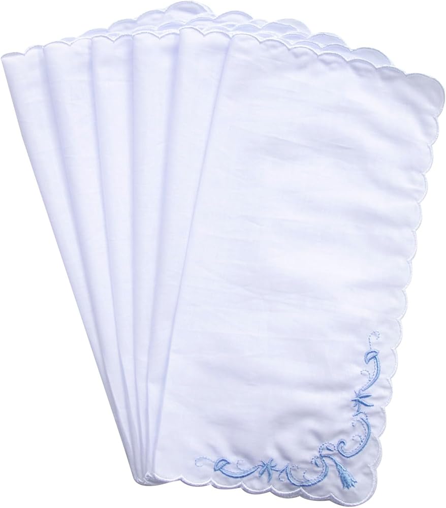 قماش أبيض ناعم مع تفاصيل مطرزة بيضاء دقيقة وأعمال دانتيل؛ تظهر هذه المناديل المطرزة الأناقة التقليدية في أي مناسبة، خاصة في حفلات الزفاف. كما أنها هدية جيدة عندما يأتي عيد ميلاد الآخرين أو العطلة، أو حفل استقبال المولود الجديد، أو دعوة الزفاف، أو بحروف كبيرة، أو تطريز على الأعراس.