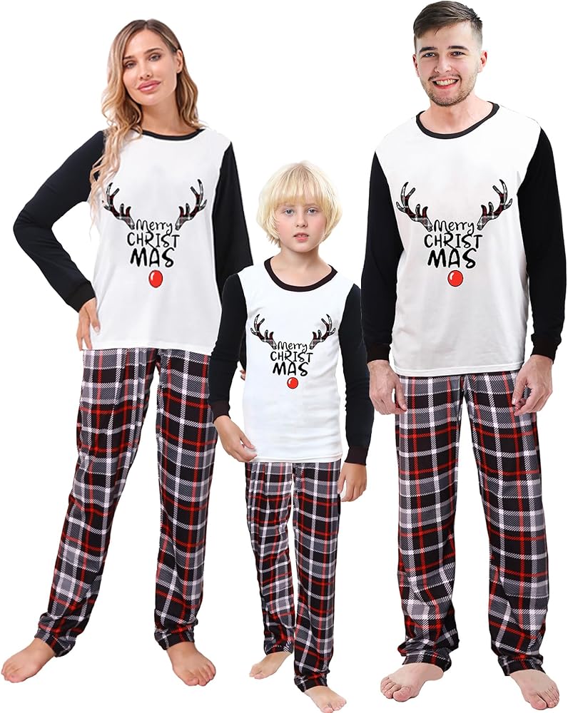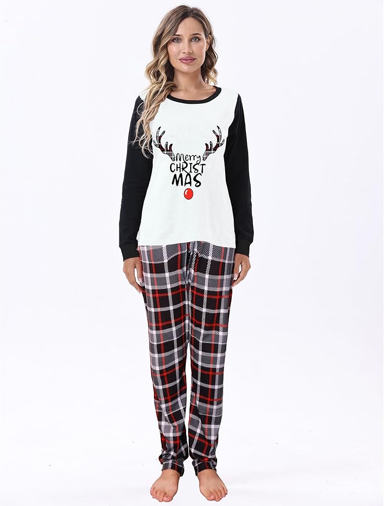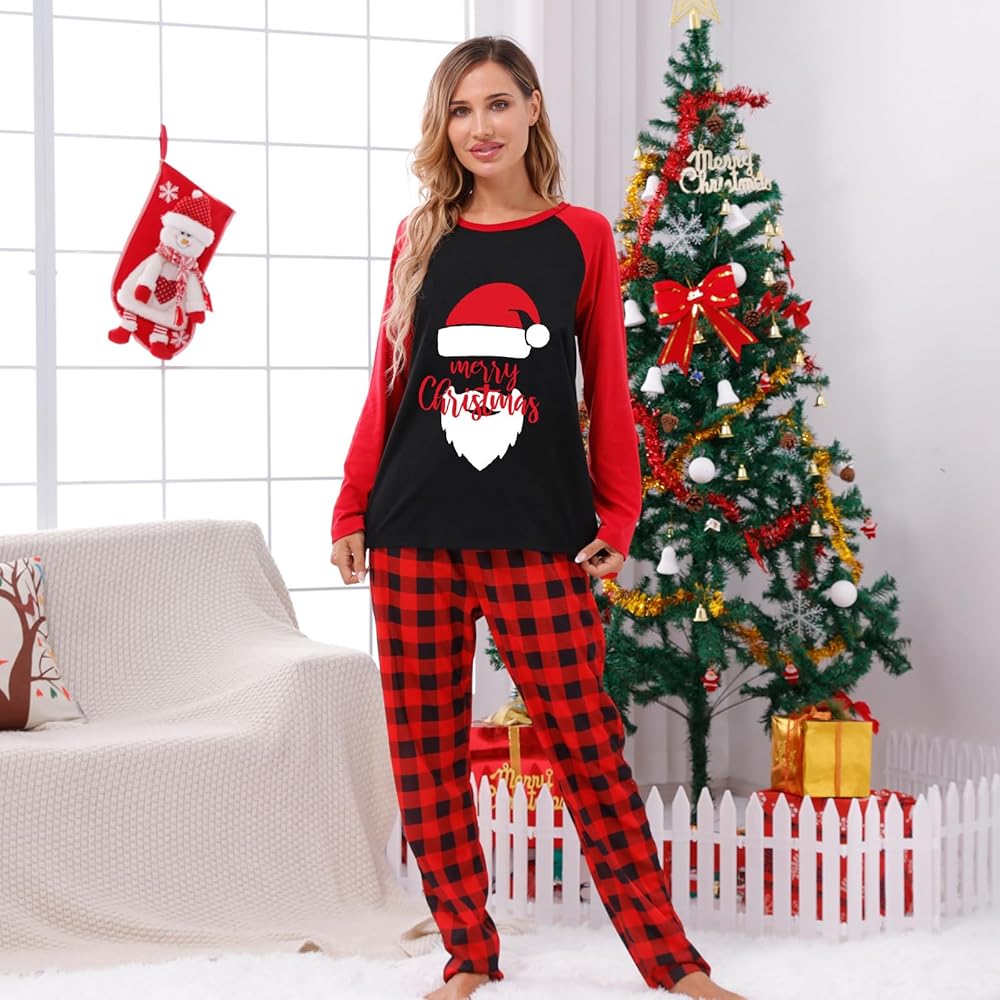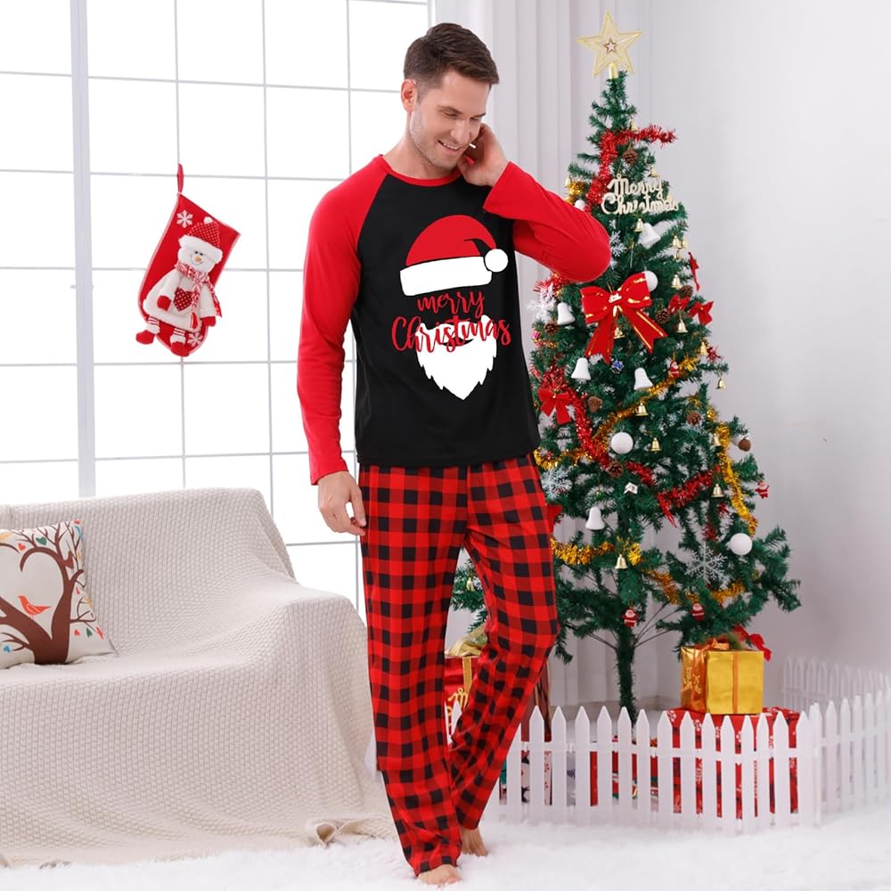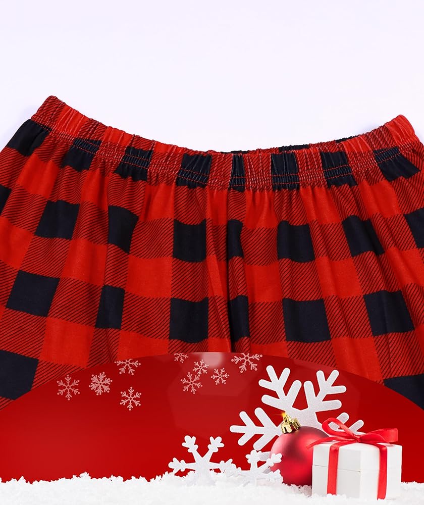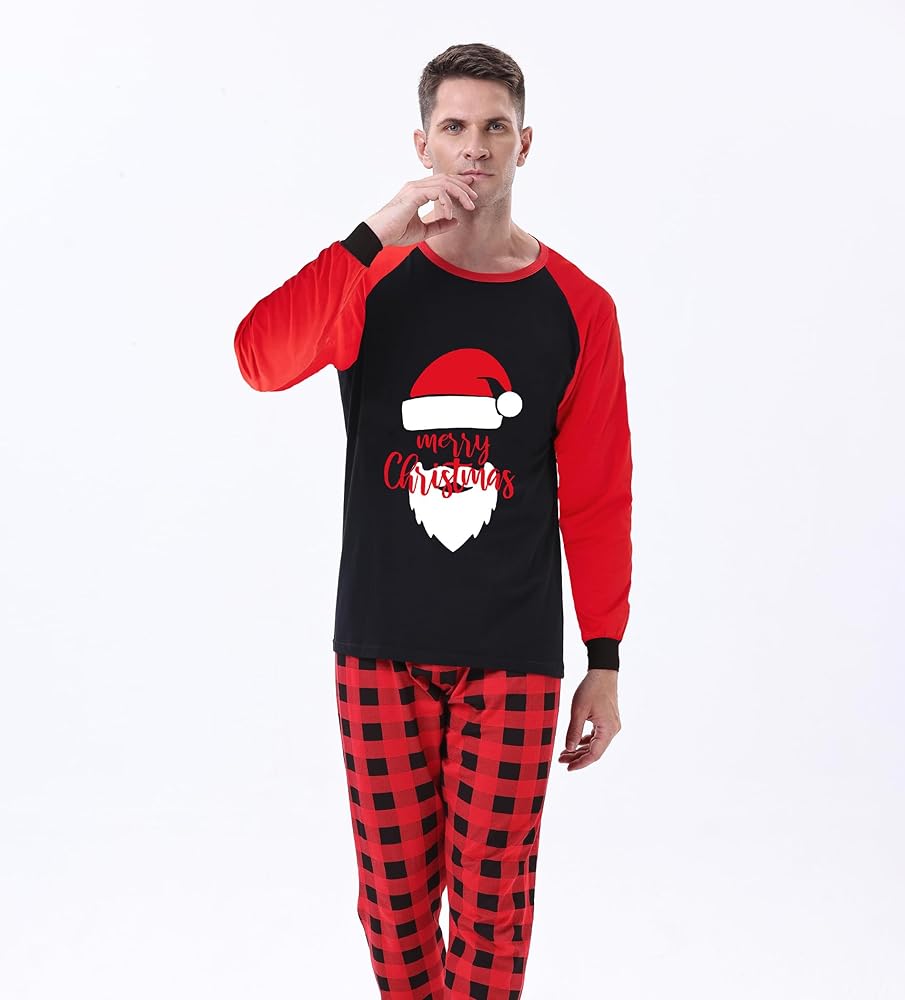 النمط الكلاسيكي ذو الصلة بعيد الميلاد المطابق للقمصان ذات الأكمام الطويلة يجعل هذه البيجامات مثالية لاحتفالات عيد الميلاد.