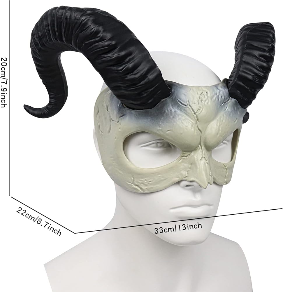 【Goat Horns Mask Size】The approximate size of this half face prom mask is: 13in*8.7in*7.9in.Approximate weight: 0.33lb/150g
