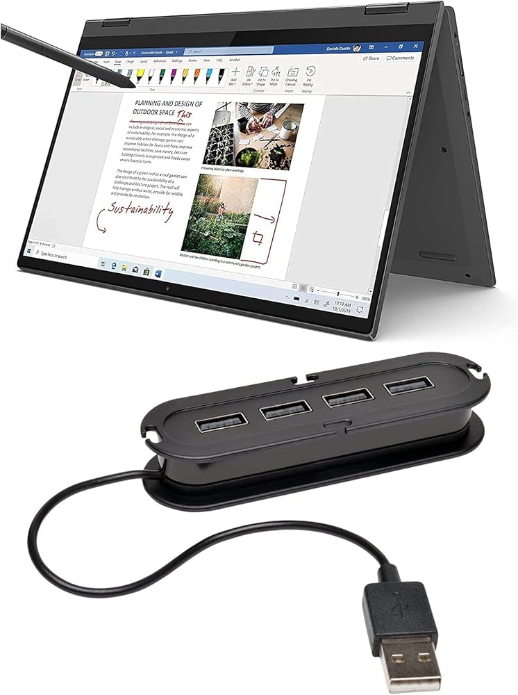 • استمتع بما يصل إلى 10 ساعات من عمر البطارية، بالإضافة إلى الشحن السريع بنسبة 80% خلال ساعة واحدة فقط، موزع USB 2.0 ذو 4 منافذ