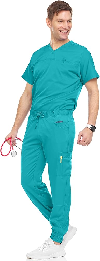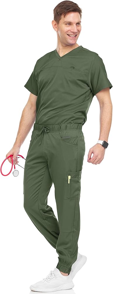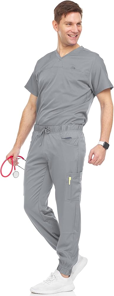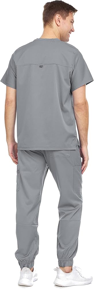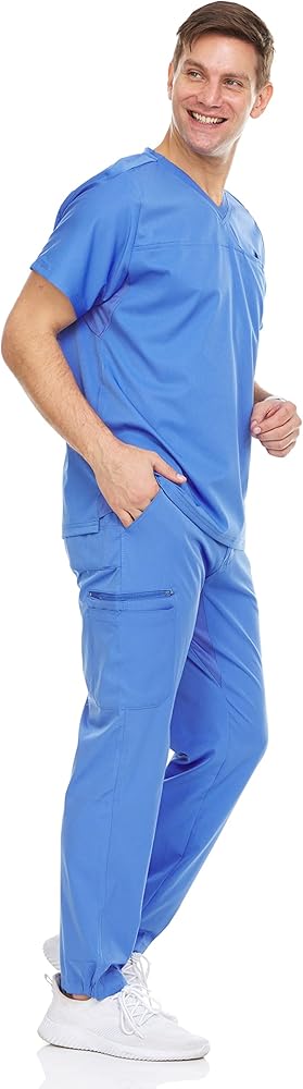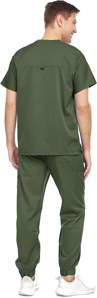 Made in 93% Polyester 7% Spandex fabric; Bundle includes a full set of men scrub top and jogger pant