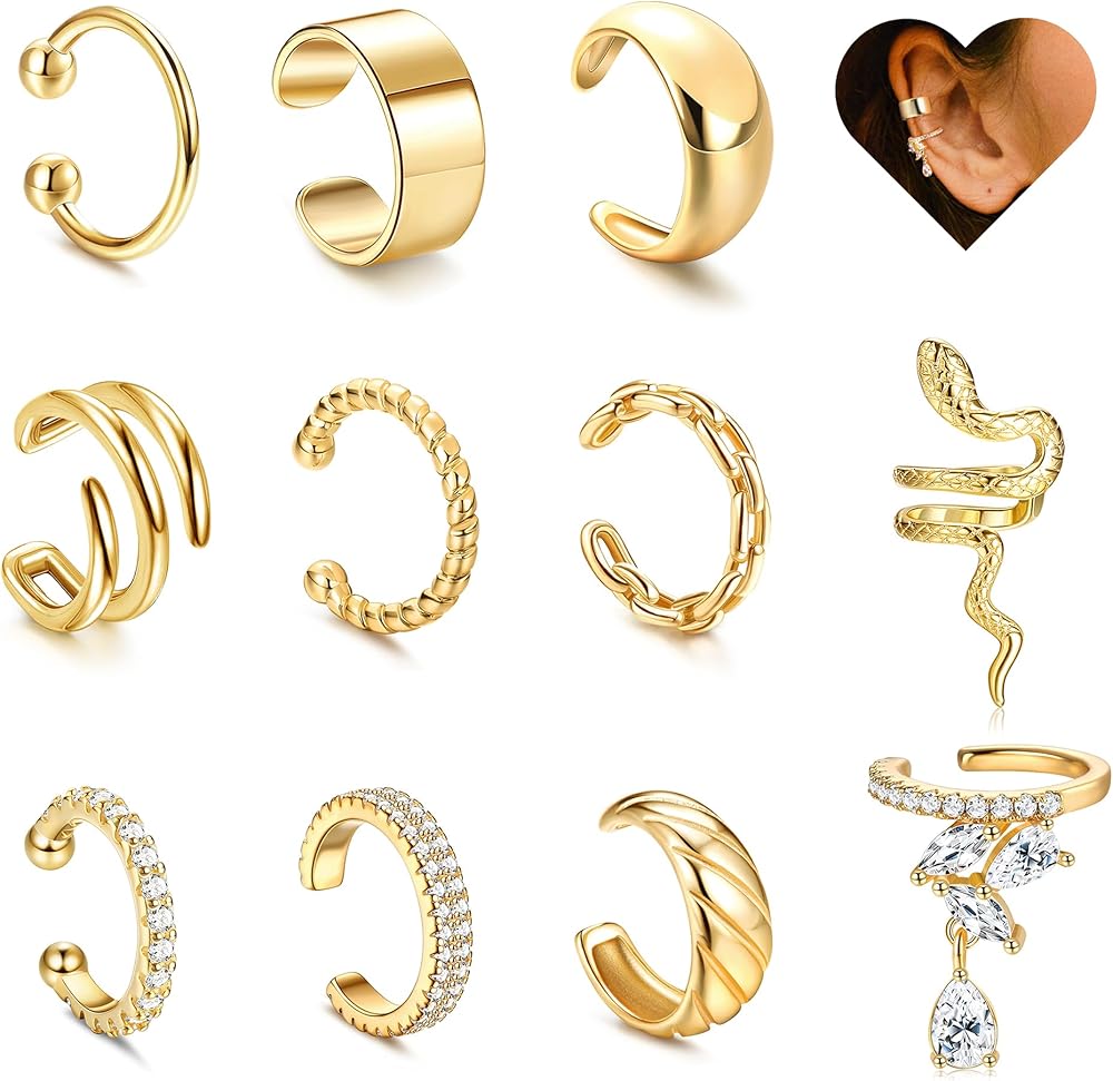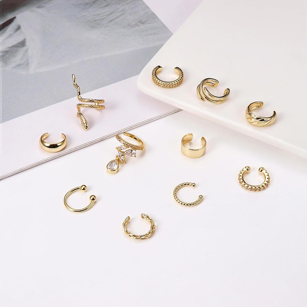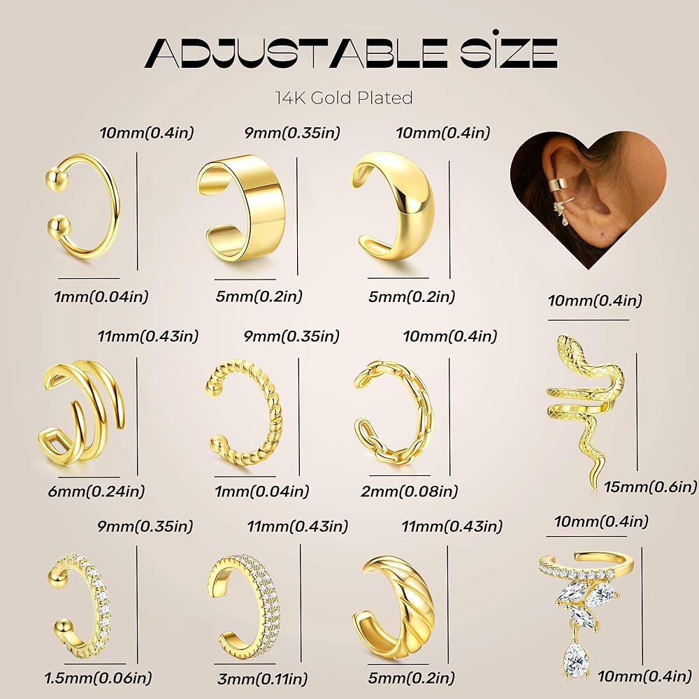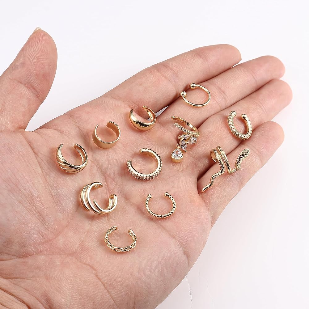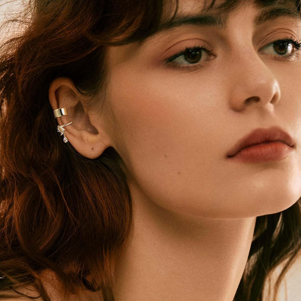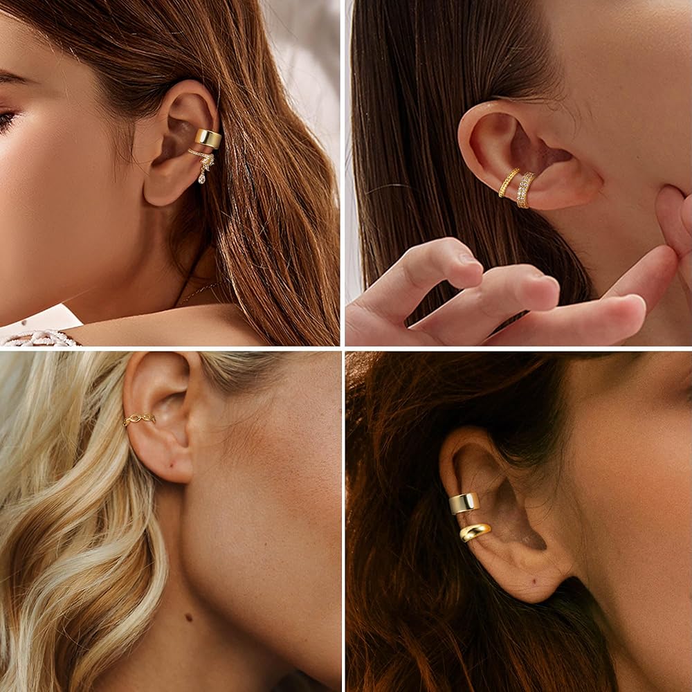 「أساور أذن غير مثقوبة」سوف تحصل على 6 قطع من الأقراط الذهبية (غير مثقوبة) في طلب واحد. أنماط بسيطة وأنيقة وفريدة من نوعها تلتف حول الجزء العلوي من أذنيك، يمكنك بسهولة خلق الوهم بارتداء أقراط حقيقية بدون أي ثقب مطلوب.