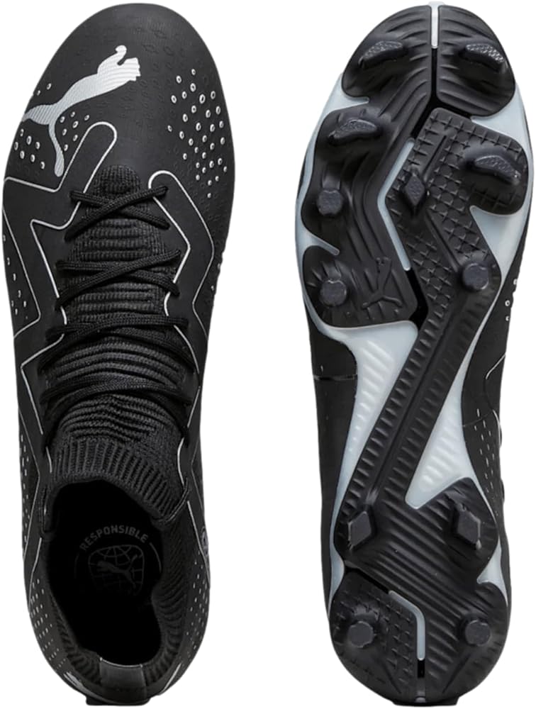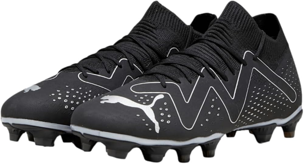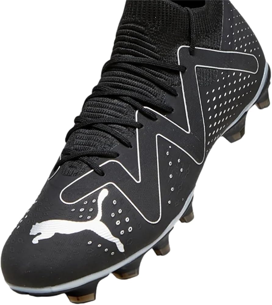 Keep your traction high on the ground by wearing PUMA Future Match FG/AG sneakers. FUZIONFIT+ upper adaptive compression technology that locks down your foot and allows for more explosive movements on the pitch. Textile lining. GRIP CONTROL PRO insole super-thin textured skin designed for improved ball control no matter the pitch conditions. Nano grip technology. Advanced Creator Zones. Round streamlined toe for speed. Lace closure. Signature cat on the toe counter. Ribbed collar. Super lightweight Peba base. Dynamic Motion System outsole.