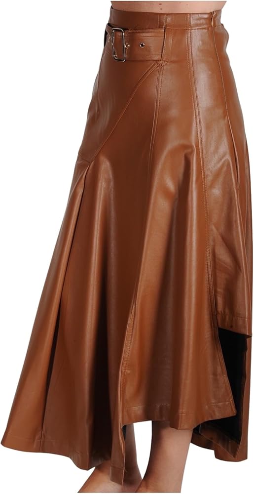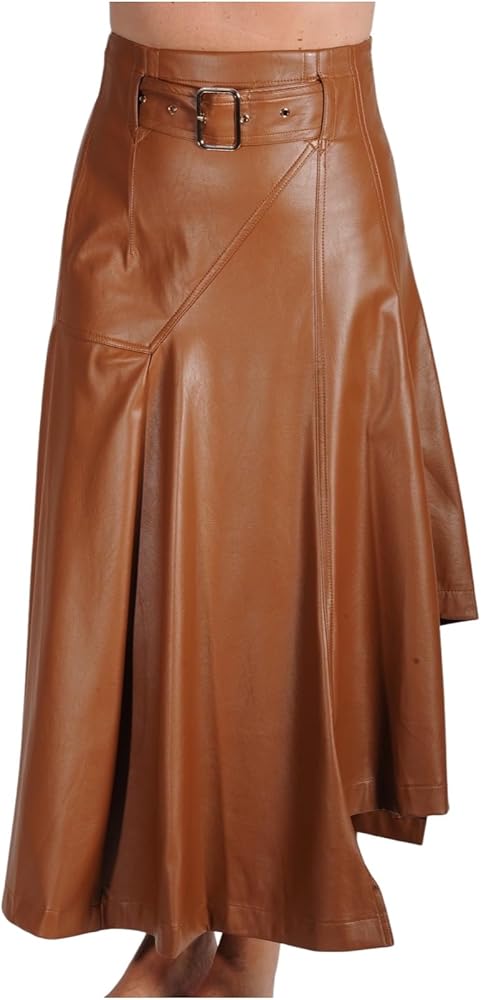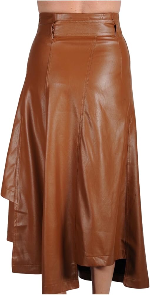 تنورة طويلة من الجلد الصناعي للنساء من كابوتشيني