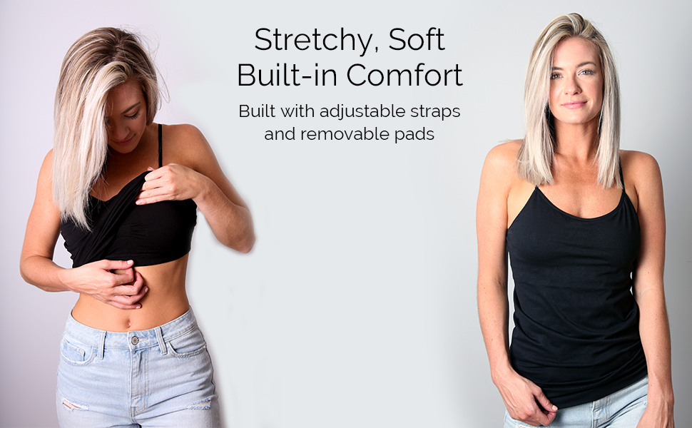 مواد عالية الجودة - القميص الداخلي الخاص بنا مع حمالة الصدر المدمجة مصنوع من مزيج من النايلون فائق النعومة والألياف اللدنة الذي يمنحك شعورًا بالراحة على بشرتك. يستخدم القميص الداخلي المبطن مع حمالة الصدر المدمجة نفس الفوط مثل حمالات الصدر القياسية، مما يوفر شكلاً ودعمًا ممتازين. القمصان الداخلية للسيدات مصنوعة في الولايات المتحدة الأمريكية، مما يضمن جودة الصناعة والمواد.