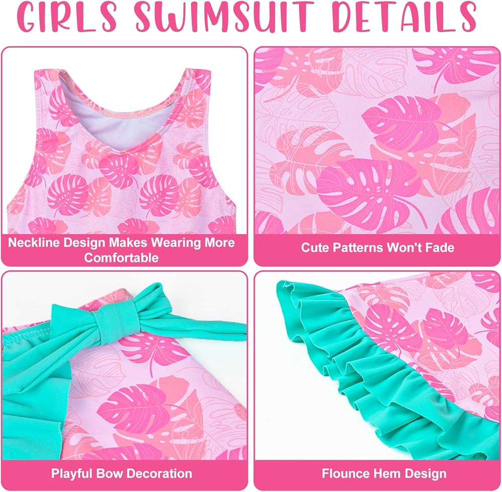 • 【High-Quality Fabric】The girl swimsuit is made of high-quality polyester fabric, which is soft and skin-friendly, anti-wrinkle, quick-drying, elastic, cool, and breathable. It is very suitable for girls to wear in summer without being stuffy.
