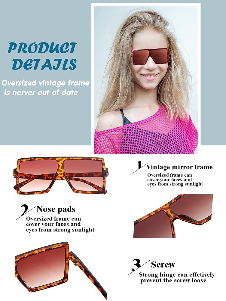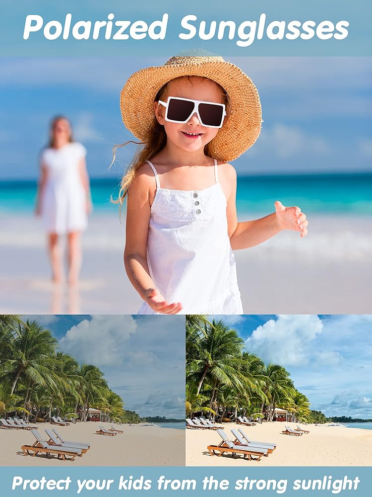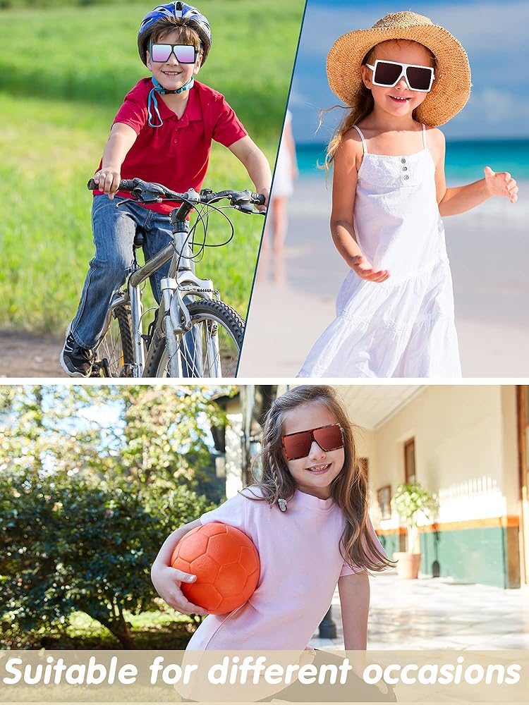 These sunglasses are suitable for boys or girls aged 3-10 years old. The oversized frames bring protection to your child's face, block strong rays in the summer and bring shade and coolness so that your child can enjoy outdoor activities in the summer
