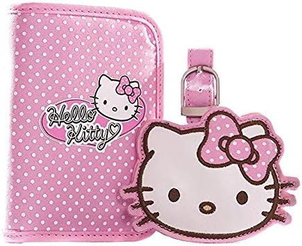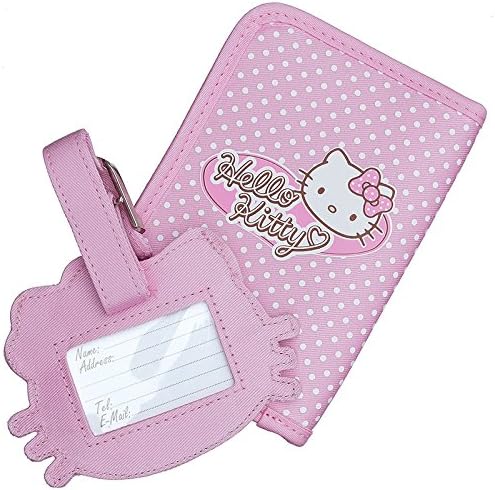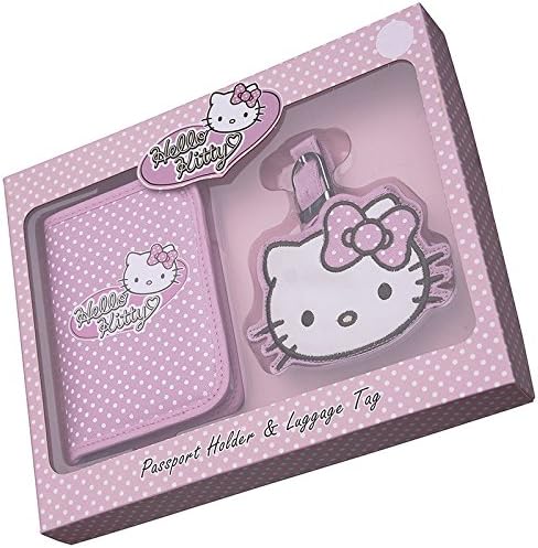 مجموعة حامل جواز السفر وبطاقات الأمتعة بتصميم منقط باصدار محدود من هالو كيتي مع صندوق هدايا، زهري، مقاس واحد