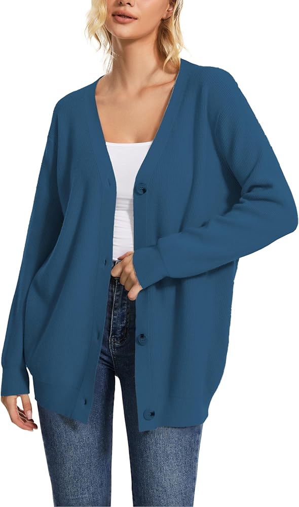 Features:V-neck,Button down, open front,ribbed knit cuffs hem, loose fit, classic solid color, length below hips, simple chunky cardigans for women