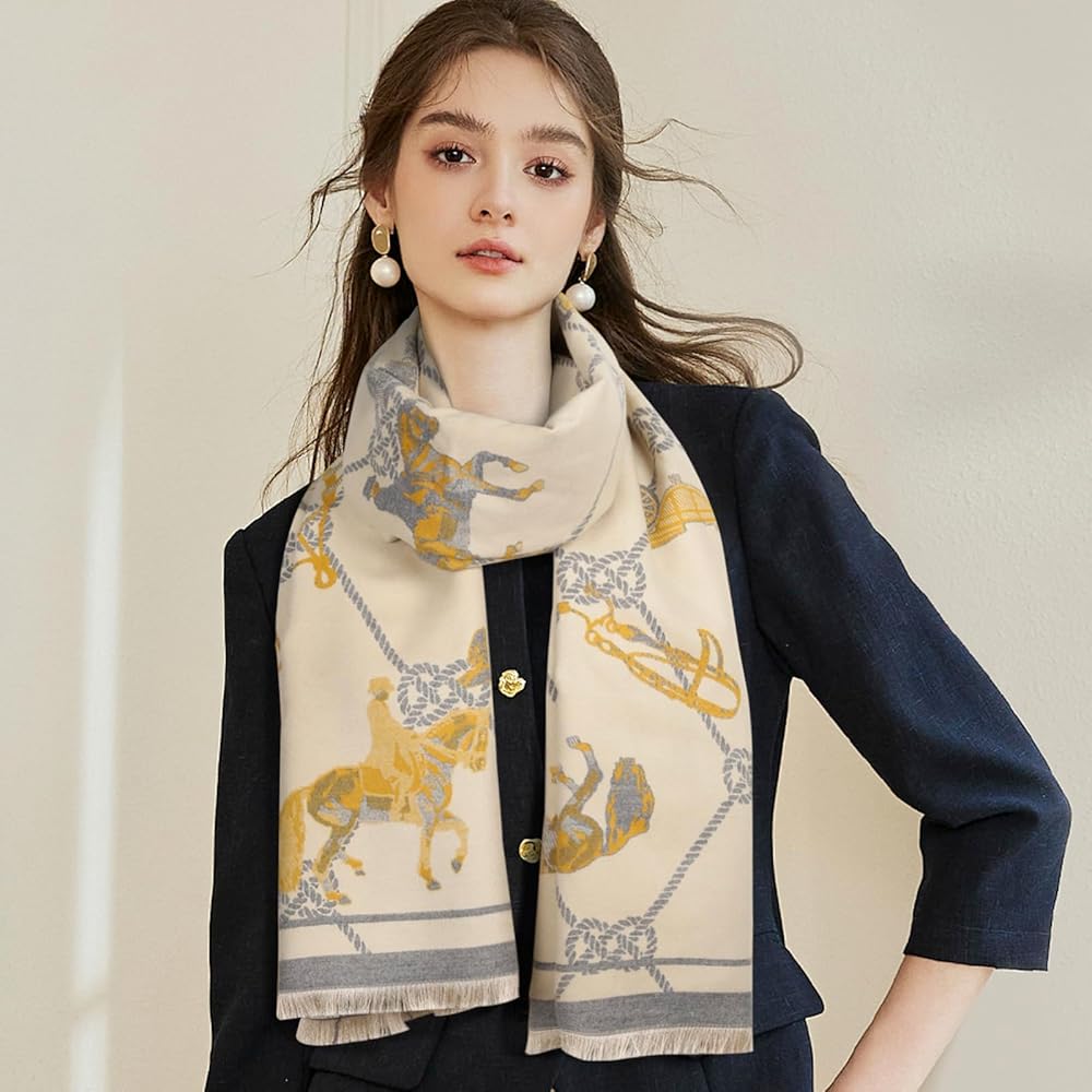 【خامة ممتازة】: وشاح دافئ 73.5 بوصة × 26 بوصة بما في ذلك الشرابات. مصنوع من الكشمير والباشمينا، مرن وناعم ومريح.
