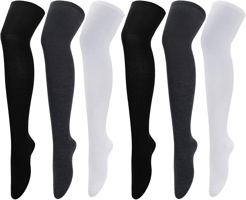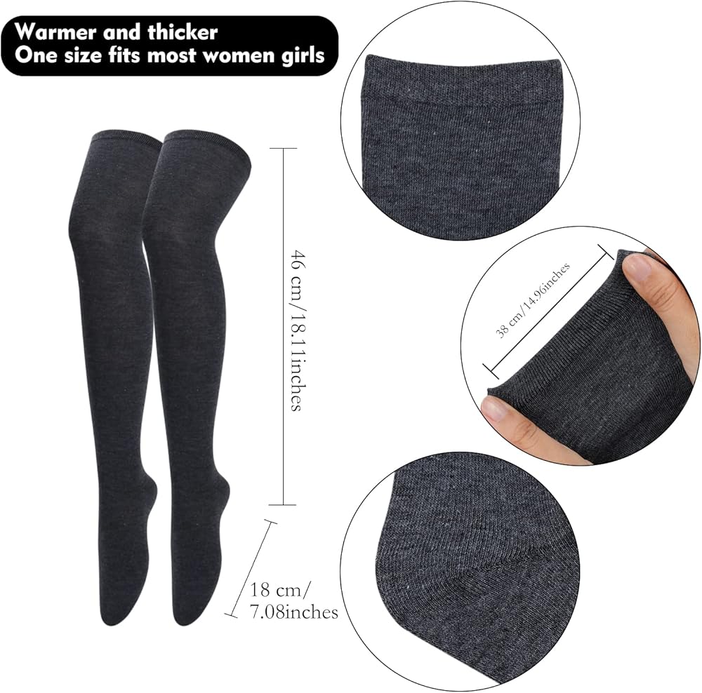 ون سينج 3-10 ازواج من الجوارب عالية الفخذ للنساء فوق الركبة، جوارب قطنية طويلة سميكة طويلة جوارب عالية الفخذ للنساء, One Size