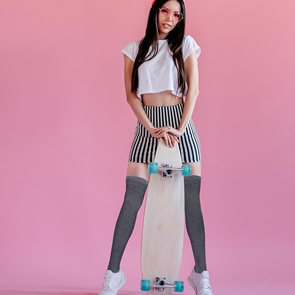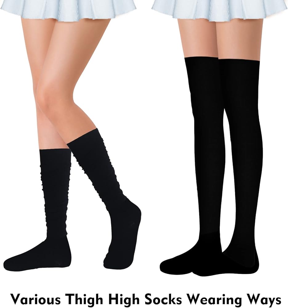 • ون سينج 6 أزواج من الجوارب الطويلة حتى الفخذ فوق الركبة للنساء، جوارب طويلة لتدفئة الساق للنساء