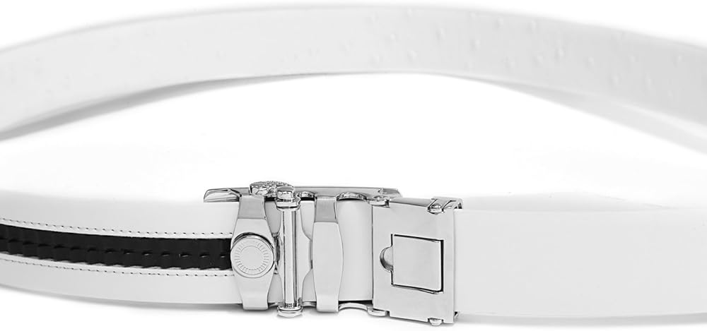 أبازيم دبوسية أنيقة: يتميز هذا الحزام الجلدي الأبيض بإبزيم دبوس من سبائك الزنك، وخالي من النيكل، ومصنوع جيدًا بقوة أعلى.