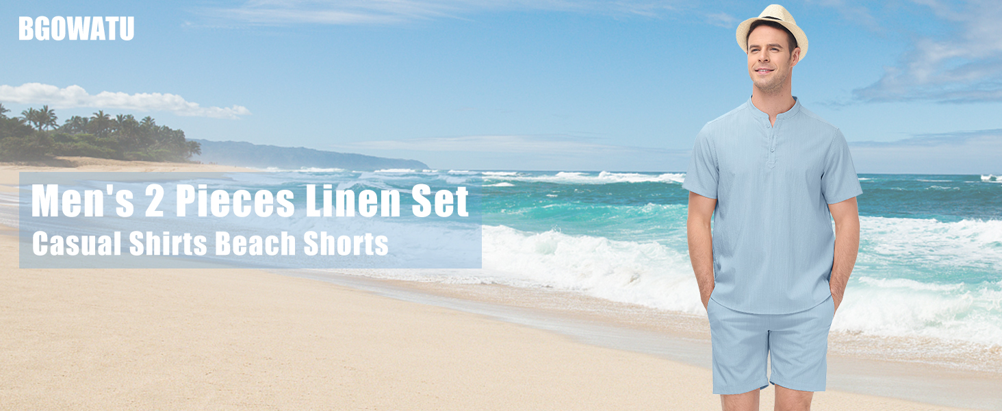 بدلة الكتان الصيفية الرجالية من BGOWATU رائعة للشاطئ، واليوجا، والعطلات، والركض، والخارج، والرياضة، والشارع، والمناسبات غير الرسمية، والمنزل وما إلى ذلك.