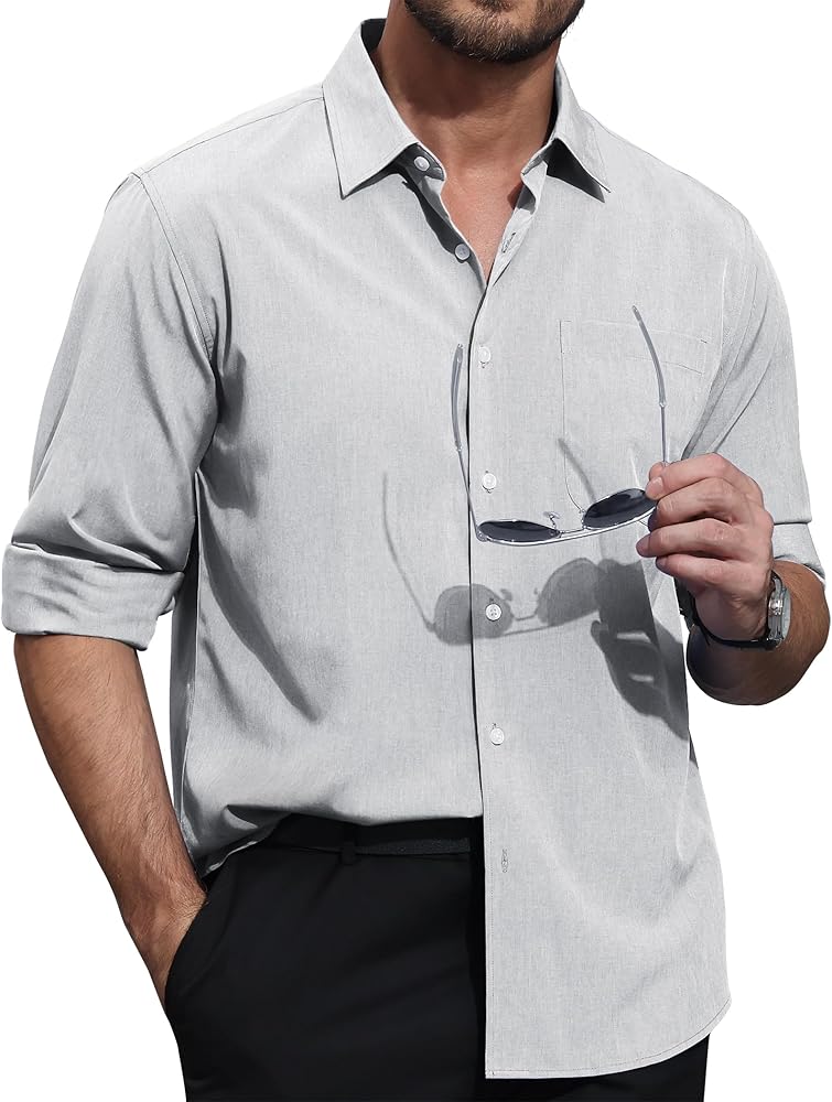 يمتص الرطوبة - تم تصميم القمصان الرجالية الكاجوال ذات الأزرار السفلية لامتصاص الرطوبة بعيدًا عن الجسم لمساعدتك على الشعور بالانتعاش والجفاف والتهوية والراحة.