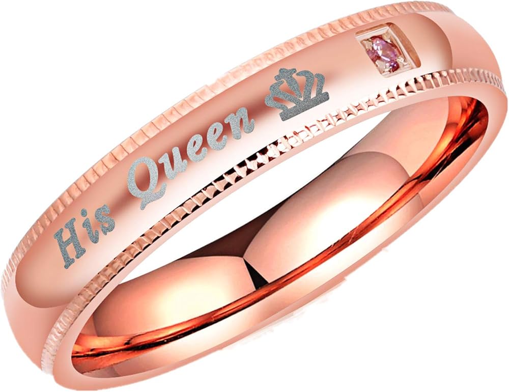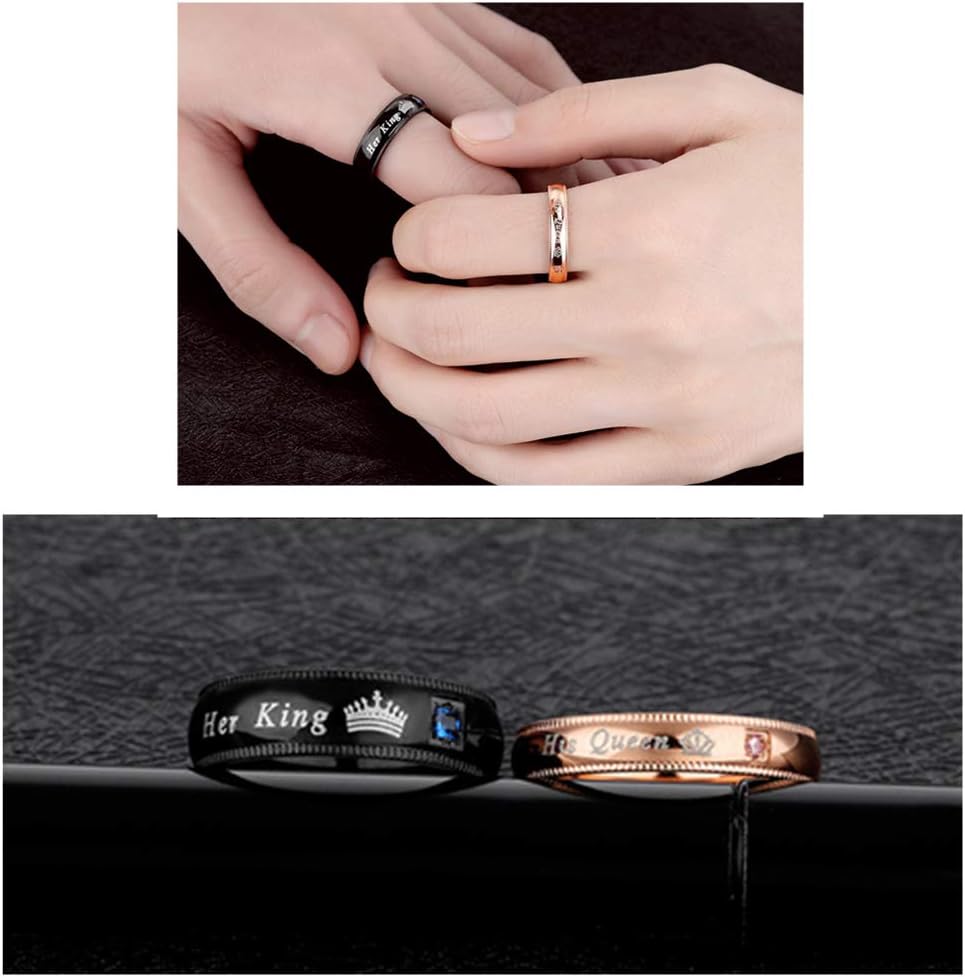 Mintik Her King His Queen Wedding Bands for Men Women Stainless Steel His and Hers Couples Matching Anniversary Engagement Promise Rings