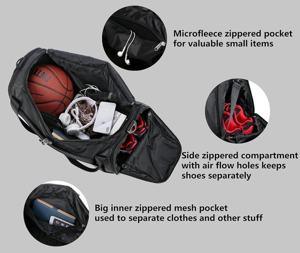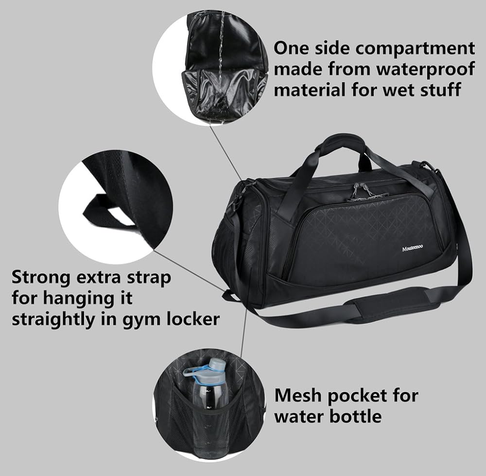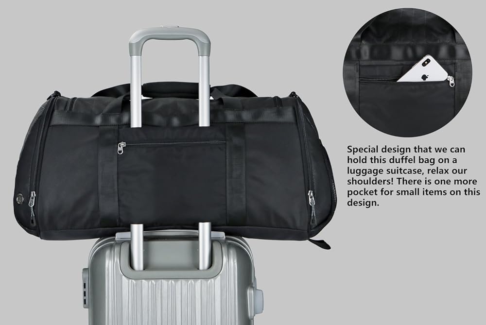 حجرة منفصلة للأحذية وجيب جانبي مقاوم للماء: تم تصميم حجرة بسحاب على جانب واحد مع فتحات تدفق الهواء لإبقاء حذائك والعتاد المتسخ منفصلين. يوجد جيب جانبي مصنوع من مادة مقاومة للماء على جانب آخر حيث يمكننا وضع الملابس المبللة والمناشف وما إلى ذلك. لدينا خاص تصميم يمكنك من حمل حقيبة القماش الخشن هذه على حقيبة الأمتعة التي لا تحتاج إلى حمل هذه الحقيبة على الكتف أثناء السفر، واستمتع برحلة مريحة.