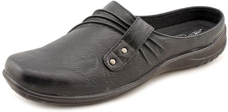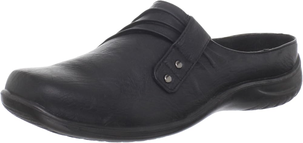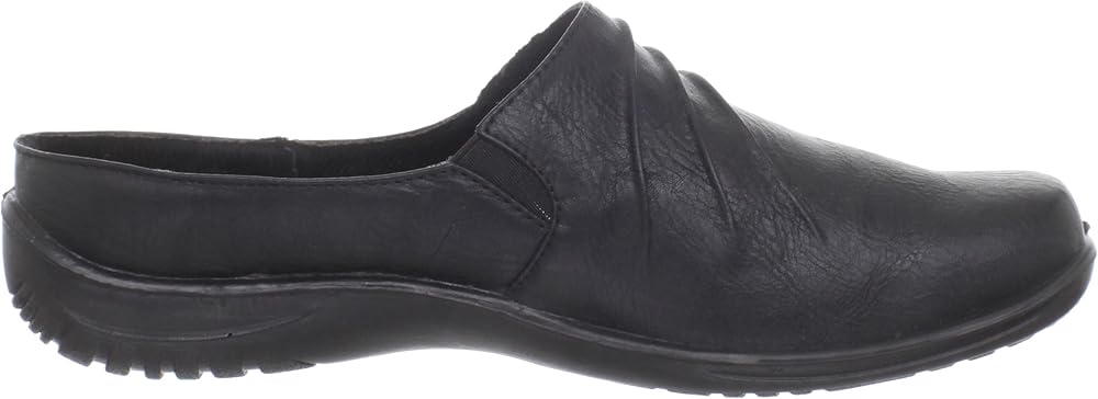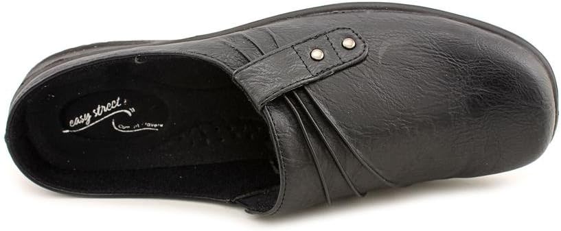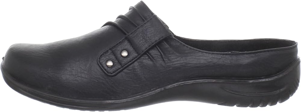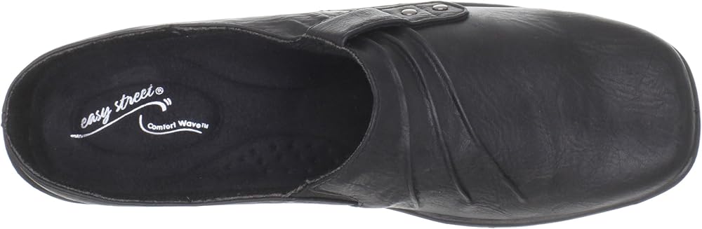 Update your casual wardrobe wearing the Holly by Easy Street with its ruched detailing and decorative studs. Excellent traction, stretch for fit and comfort, and a well padded sock make this mule a fashionably comfortable style for everyday wear.