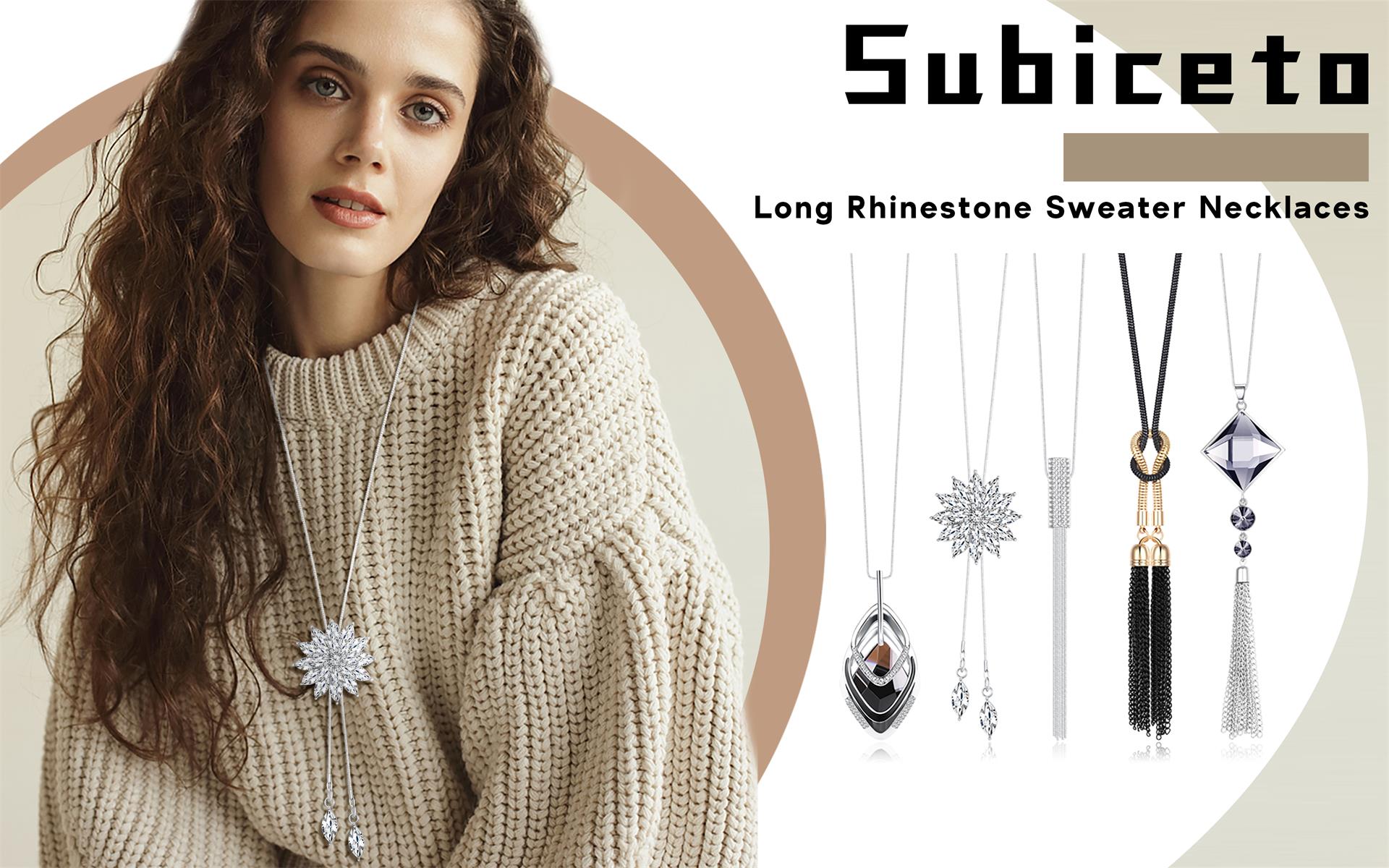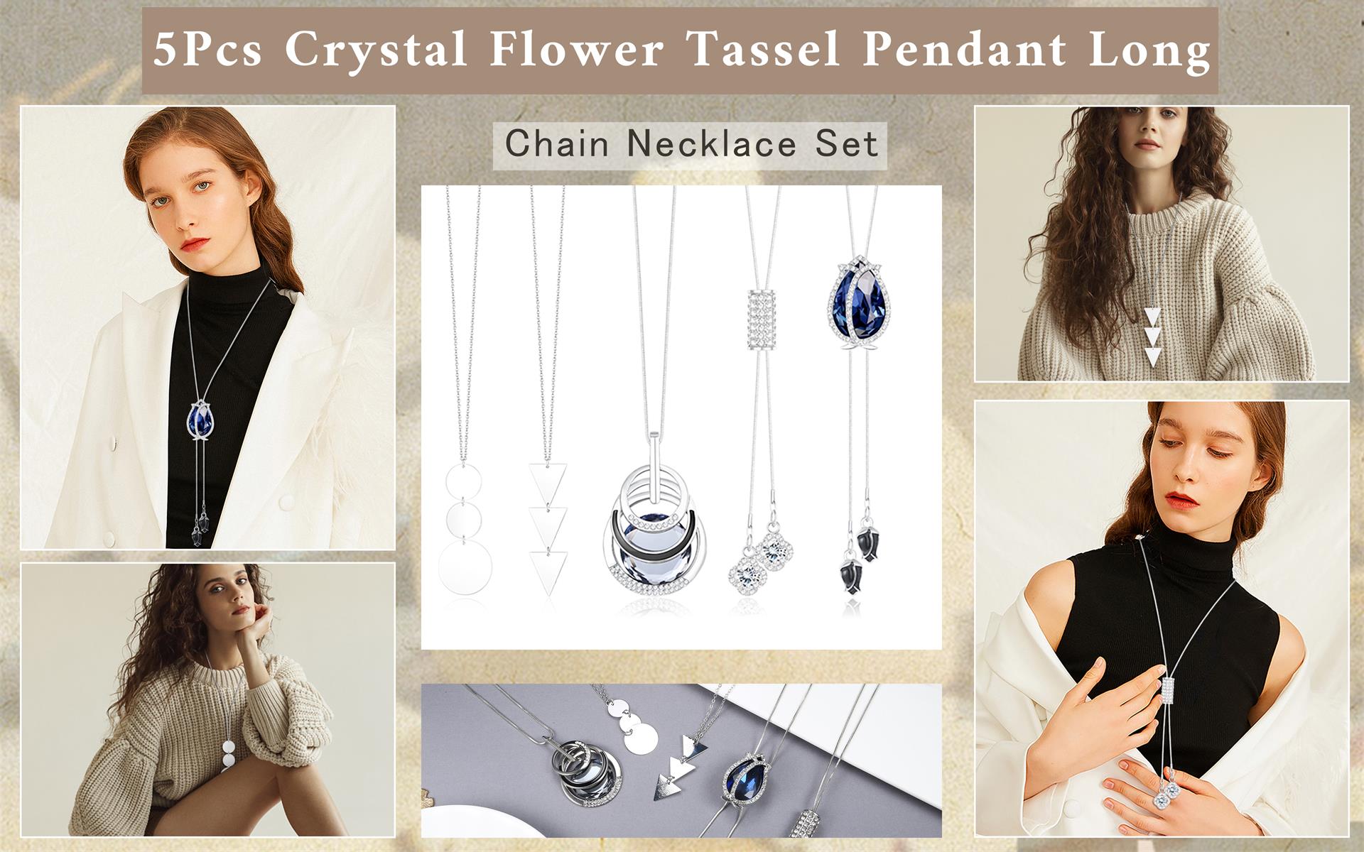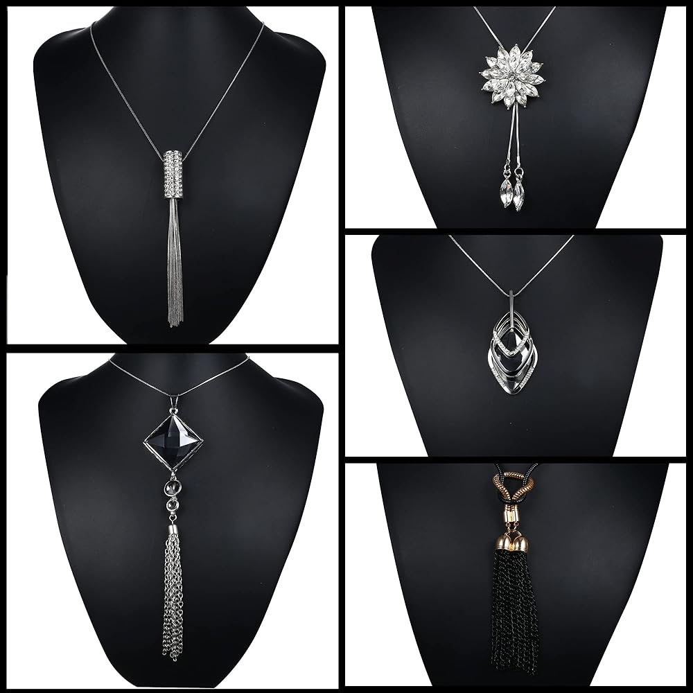 مجموعة قلادات طويلة: 5 قطع قلادة طويلة مطلية بالفضة في مجموعة واحدة، العديد من الأنماط المختلفة بما في ذلك، مثل: قلادة كريستال، قلادة شرابة، قلادة زهرة، قلادة ثلاثية المكدس من الزركونيا المكعبة، إلخ.