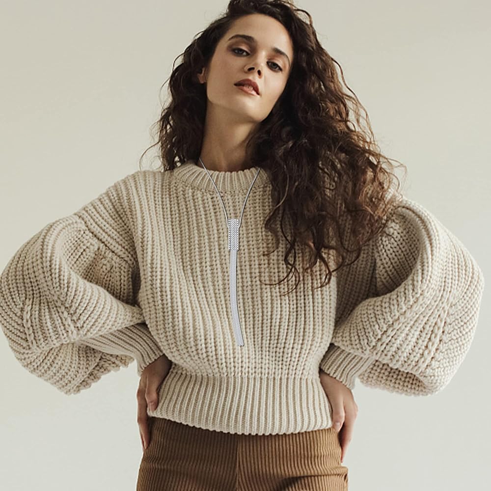 قلادة جديدة قابلة للتعديل: يبلغ حجم القلائد المتدلية هذه حوالي 35-36 بوصة (89-91 سم)، مع موسع مرن قابل للتعديل، يمكن أن تلبي احتياجاتك لمراجعة قصيرة أو طويلة عند ارتدائها؛ ويمكنك تحريك السلسلة إلى شكل متماثل أو غير متماثل، لتتناسب مع أسلوبك الفريد.